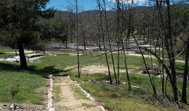 We found the walk down to the river easy and perfect sandy area for swimming and launching kayaks etc.