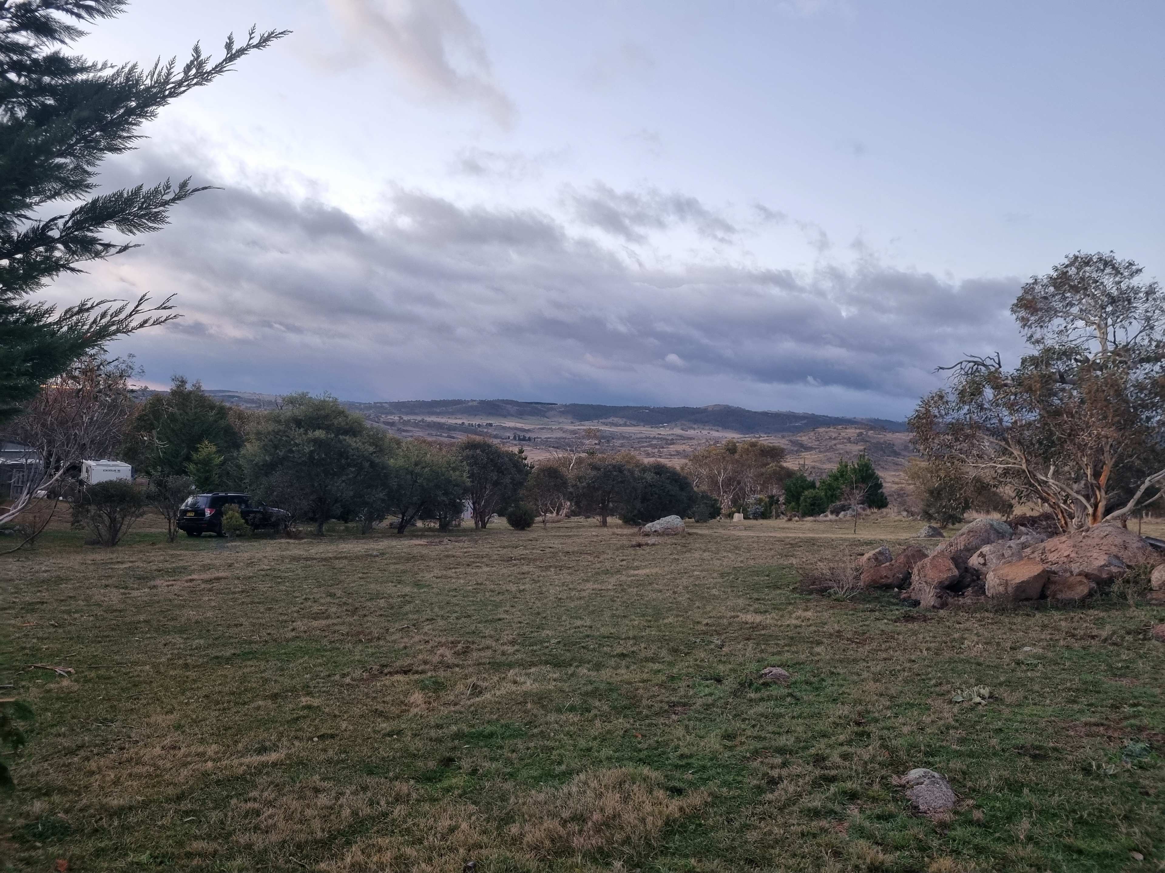 Ashwood is located a short drive from (6km)Jindabyne in the hills of Cobbin estate . The 4 acre property has beautiful views of rolling hills and glimpses of the Moonbah River. It currently has one plot for a camper , tent or mid sized caravan. A short stroll will take you to the moonbah River for fishing and or sightseeing. Only a 35 minute drive to the resorts or 5 minutes to the station resort .East paddock is a grass corner of the property with some old snow gums and natural granite out crops . The aspect is south east and sure to catch the morning sun rising over Mcgufficks Hill and lighting up hills and farmland and glimpses of the Moonbah River which is only a short walk . The morning views are not to be missed with low cloud in the valleys kangaroos and the odd wombat in the area .