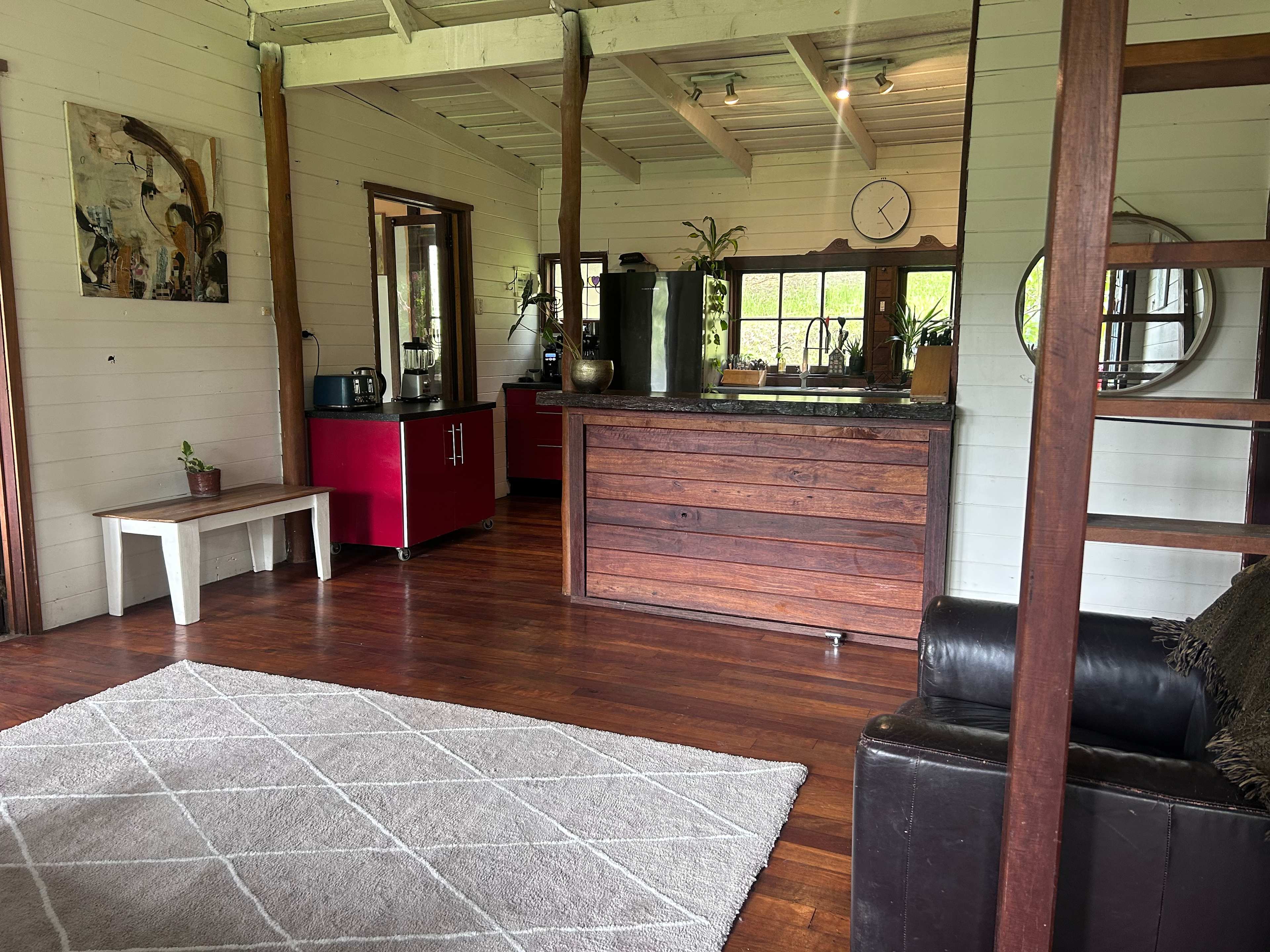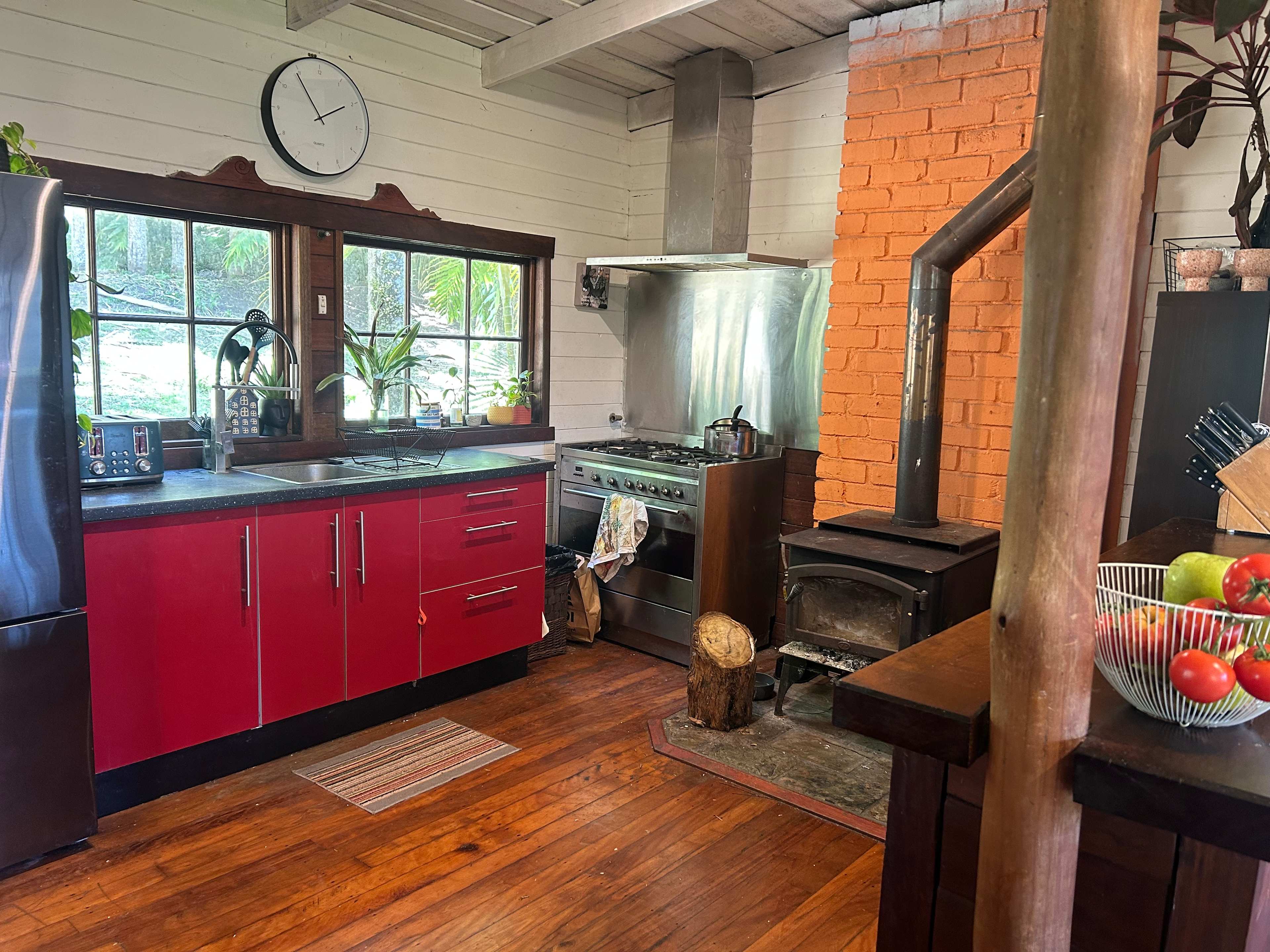 Hidden among lush rainforest and towering palms, this charming three-bedroom cabin offers a peaceful retreat where you can slow down and reconnect with nature. Only 7 minutes from Nimbin and 1 hour 15 mins to the Goldcoast Airport. Wake to birdsong, enjoy breakfast on the timber deck surrounded by greenery, and spend your days relaxing in the quiet beauty of the rainforest. ⸻ Perfect for 🌿 Families 🌿 Couples travelling together 🌿 Nature lovers 🌿 Writers / creatives needing a quiet retreatInside, the cabin features a spacious open-plan living area with polished timber floors, high ceilings and a warm, rustic character. The kitchen is fully equipped with all you need to comfortably cater for all meals from scratch along with a cosy rustic fireplace, making it easy to cook, gather, and share meals together. Large windows bring the outside in, filling the home with natural light and views of the surrounding trees. Step outside onto the covered deck and enjoy your morning coffee while listening to the forest come alive. The property is surrounded by lush gardens and open green space, creating a calm and private setting perfect for unwinding. Whether you’re looking for a quiet family getaway, a relaxing weekend with friends, or a peaceful base to explore the beautiful hinterland, this rainforest home offers a simple and memorable escape. • 2 large bedrooms and attic space to sleep 6 in total • Spacious open-plan living and kitchen area • Large benches for cooking and gathering, dining room along with outdoor table set up • Covered outdoor deck for meals and relaxing • Surrounded by lush rainforest and gardens • Peaceful and private natural setting