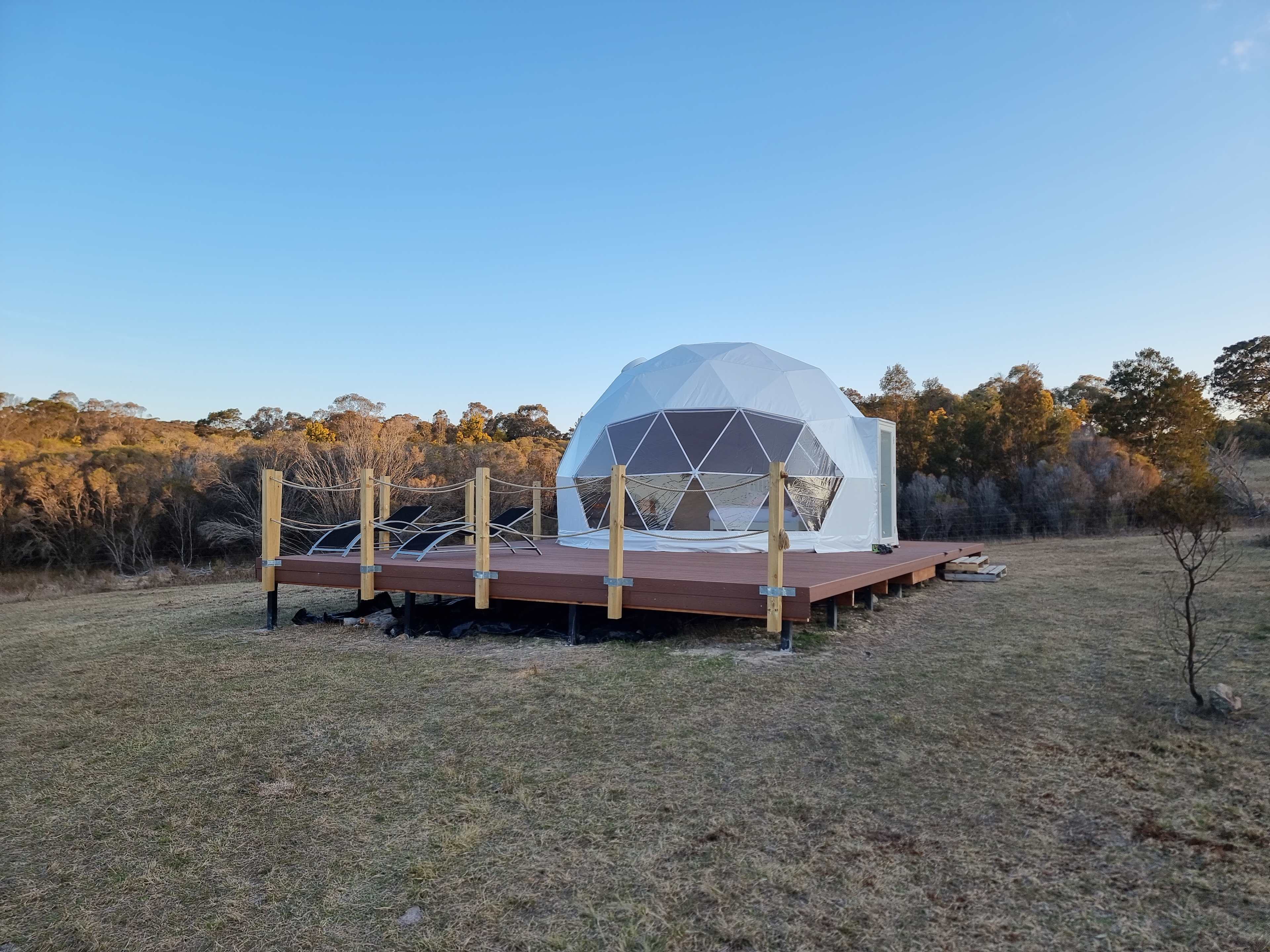 Discover your oasis amidst 100 acres of untouched native grassland and bush. Unwind in the container house and dome tent retreat from city stress.Step into a funky designer haven, fully insulated and sunlit. Relax by the pot belly fireplace and be embraced by nature's beauty. Highlights: -Equipped Meditation/Yoga/Gym room in dome tent is provided. -Stewarts Crossing Camp and river 10 mins away: fishing, kayaking, etc. -4WD training centre 3 mins away. -Only 12 kms from historic Braidwood.