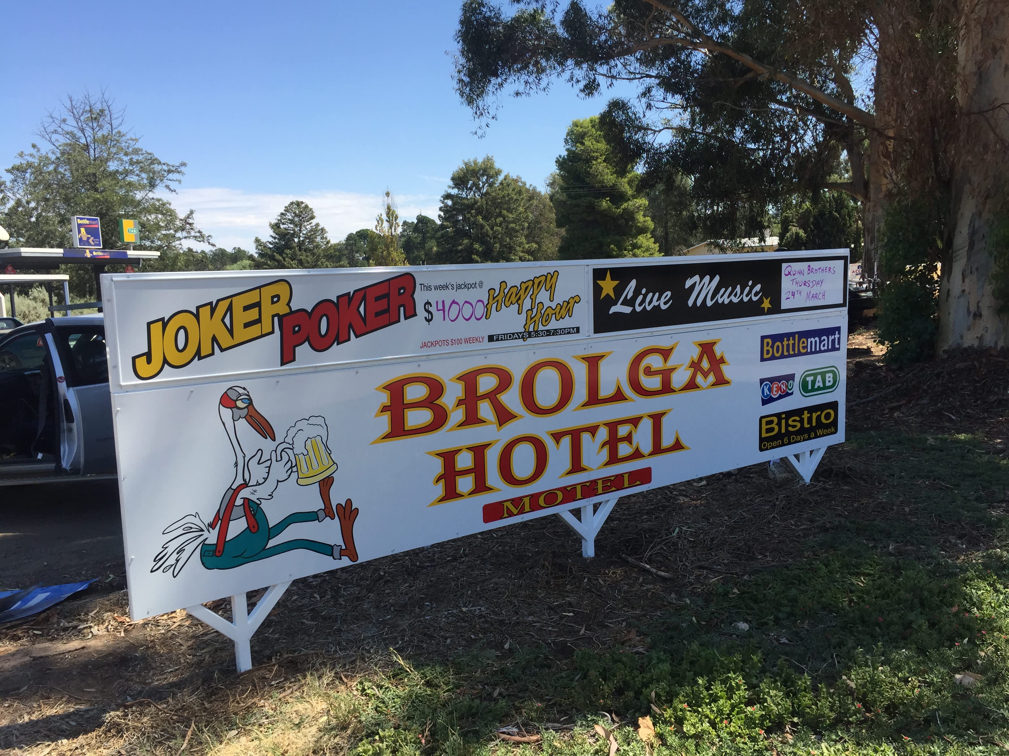 'BIRDS' the word! Built in 1971 the Brolga Hotel in Coleambally has something for everyone! From great value meals in our bistro for the whole family, to a icy cold beverage with mates after work, to all the sports and racing action in the public bar. Do you have a function coming up? We've got the space and even a place to rest your weary head after a big day, there's something for everyone at 'the Bird'. Dogs welcome!