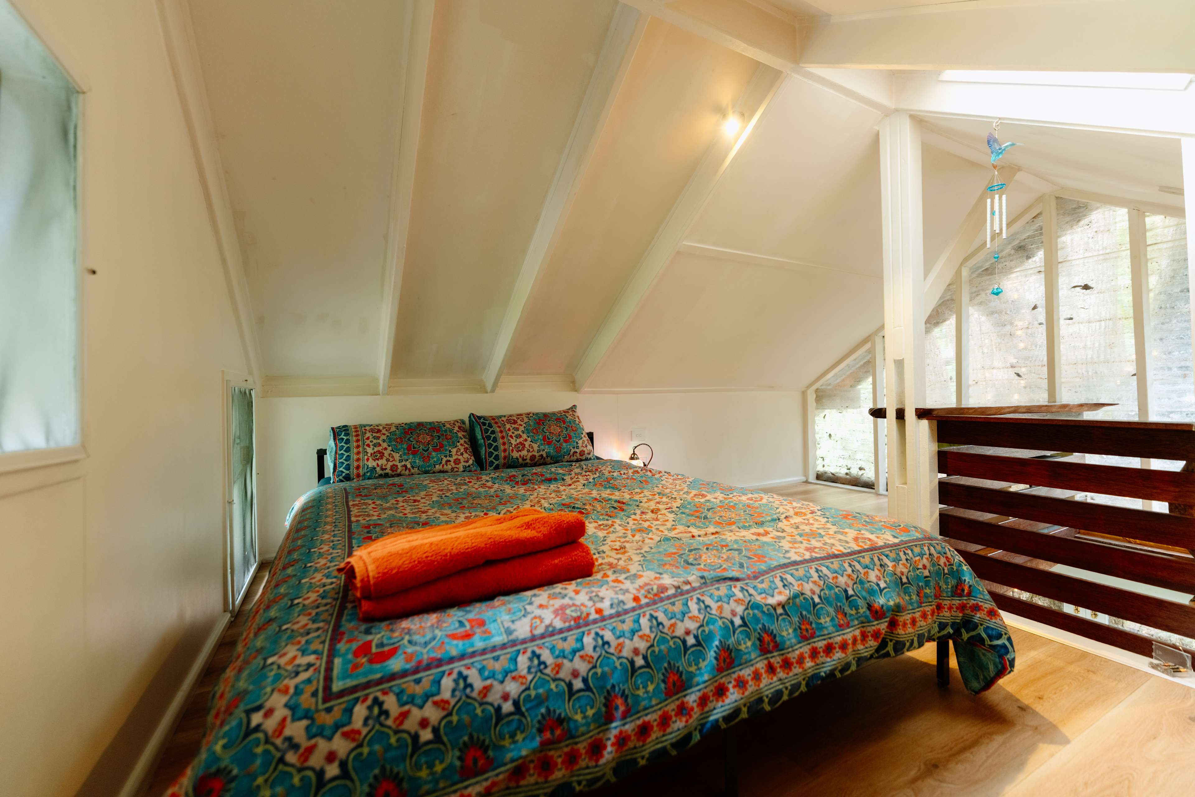 The Stable is where dreams and reality meet, with nature at your doorstep. Nestled among rolling hills, this hidden gem invites you to have fun, and feel nurtured—and let your spirit soar. Once a working stable, this unique retreat has a story woven into its walls. Here were housed the most loved horse, cow, and three goats that belong to our children. Amanda was promised a horse, Linda wanted the goats, and we needed a milking cow. Sean had a dog—though he preferred the comfort of the house. Chickens and ducks completed the picture, and those years taught us invaluable lessons about patience, simplicity, and life close to the land. As our children grew and followed their own paths, The Stable transformed into a living dream that we cherish —and now, it’s yours to enjoy. Rich in rustic charm, the space is surrounded by a sea of greenery and flowers, with stunning mountain views and lush natural scenery in every direction. Thoughtfully designed to lift your mood, The Stable blends character with comfort. Its open-plan layout welcomes natural light while still offering privacy, shelter, and a cosy sense of retreat. The large, fully fenced garden is ideal for families and pets. Let children play freely, enjoy a barbecue under the shaded terrace. You can enjoy the fireplace inside or gather around the bonfire as the sky fills with stars. Cool off with solar-powered air conditioning, unwind in the stylish bathtub, or simply sit back and let the calm surroundings work their magic. At The Stable, you’re not just staying overnight—you’re stepping into a story, a sanctuary, and a place that truly feels like home. The lovely Stable includes everything you need, bedding, towels, kitchenware. The kitchen has a fridge, stove, microwave, toaster and kettle. The living area includes a convertible couch to sleep 2 additional guests and a TV. and fireplace for colder weather. The bedroom haas a queen size bed and a solar air conditioner, which cools the whole cottage. The bathroom has a claw-footed bathtub and separate shower. Outdoor barbecue and fire pit on the terrace
