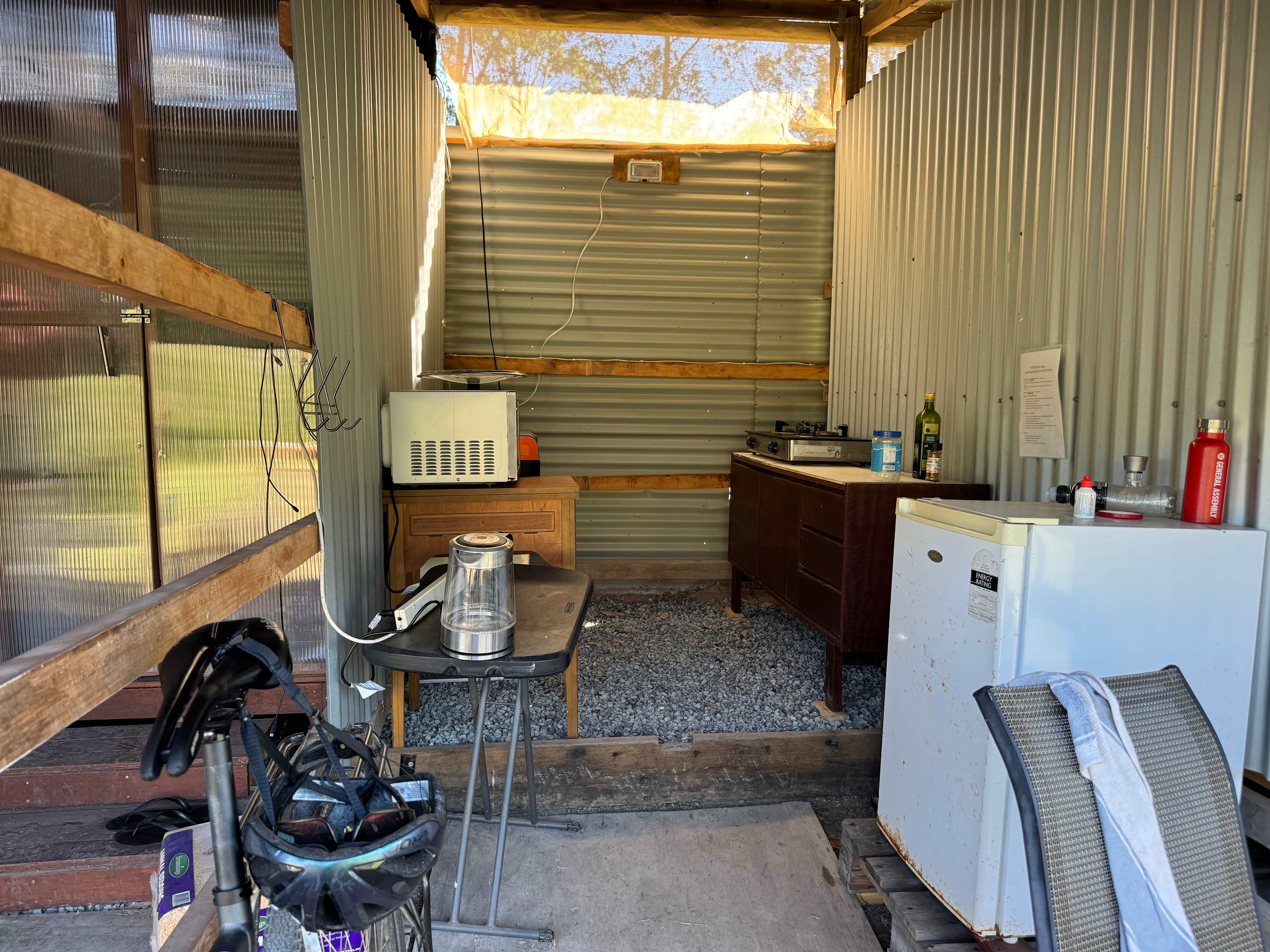Nested in one of the many Champion's creek twist and turns, even though often dry in summer the creek area remains lush and green. The Green site offers a large flat grassy area (mowed for your convenience). Can accommodate larger group with tents, camper van/trailer or caravan. A short walk to the camp entrance where a dry toilet and hot shower are available.