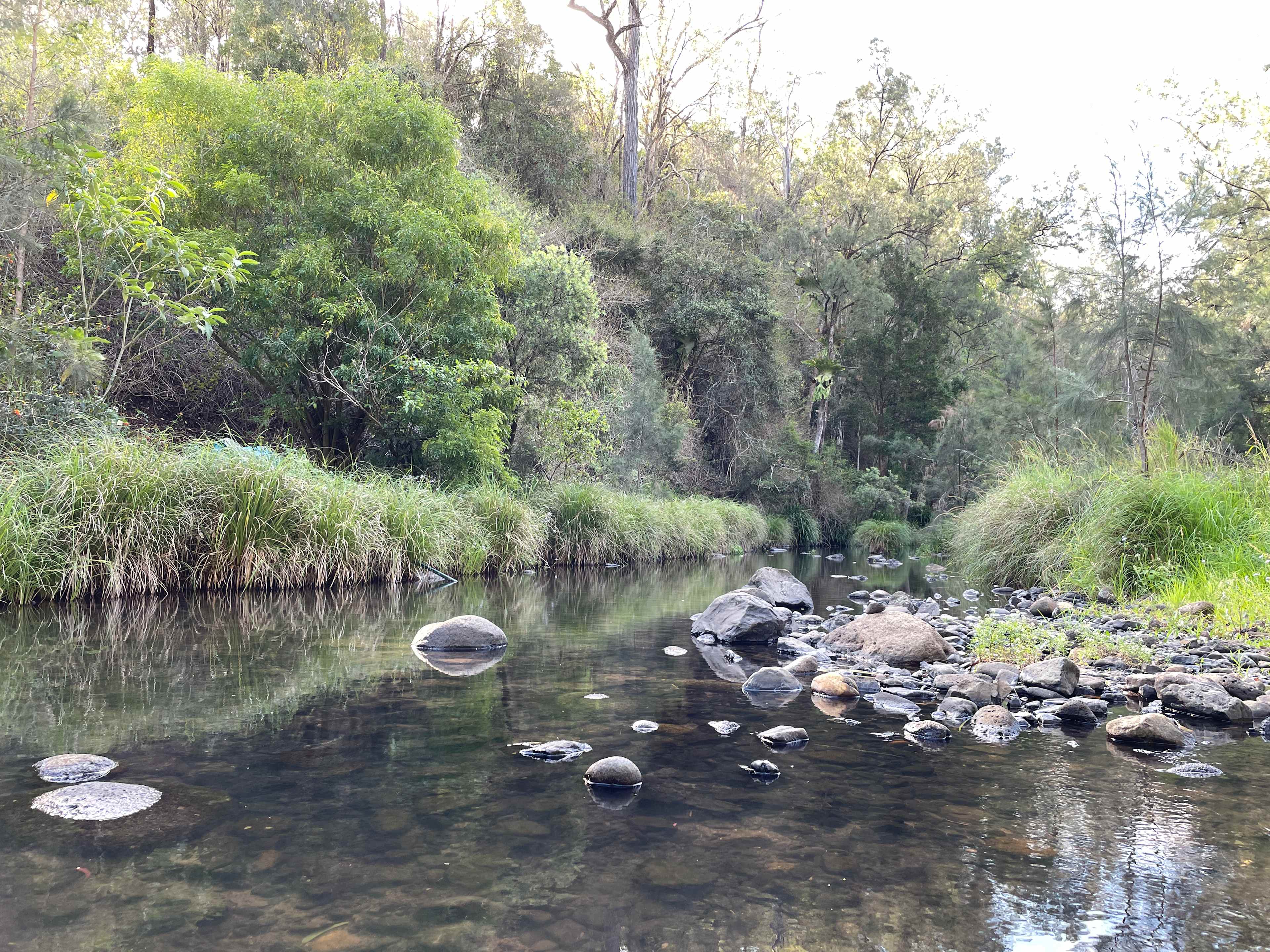 Hidden Valley is on 26 acres with frontage to Grady's Creek (the creek is our front boundary) and our back boundary is a goods train line, the train occasionally gives a toot to campers. We have two amenities blocks (six toilets and six how showers). Firewood and ice available for purchase. Hidden Valley is a dog friendly camping ground. However, it is the responsibility of the owner/s to keep their dog/s controlled at all times and on leashes, for all campers to enjoy their stay. There is no Local Council rubbish removal services available, so please take all your rubbish with you on departure. Facilities for recycling of cans and scraps is available. Please note that the Brisbane to Sydney goods train is nearby. Times vary according to supplies to port and the train may be heard from the campsite.