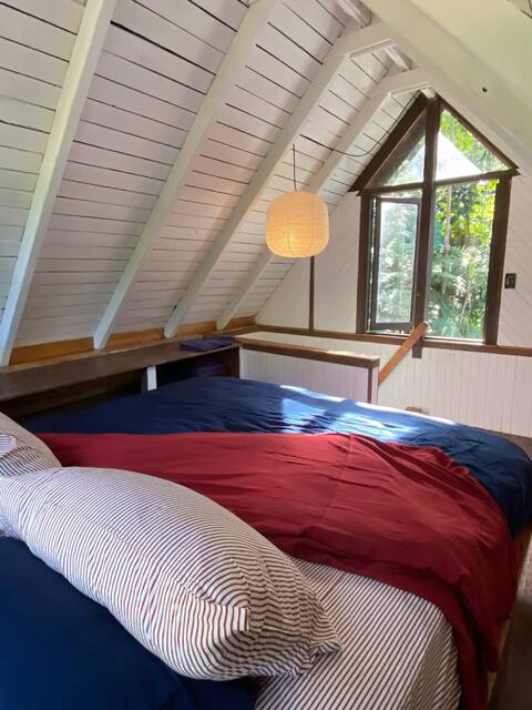 Welcome to Tallowwood House at Koru Sabi Lodge where you can relax in your own private sauna; stargaze from the outdoor bath or get cozy inside by the fireplace. See more pictures and videos on our IG: @koru_sabi_lodge If your dates aren't available, book our sister cabin, Pine Cabin on the same property. You are: - 5 mins to the General Store & Natural Wine Shop - 15 to the nearest beach - 20 to Brunswick Heads - 30 to Byron Bay - 40 to Gold Coast airport Tallowwood House was designed and hand built by our neighbour—a Japanese furniture maker—in 1979. It is a unique, rustic and intimate cabin that includes: - A private sauna - A loft bedroom with a king size bed - A lounge with two daybeds that can accommodate additional guests upon request - A small, but spacious kitchen with electric cooktops, a fridge, toaster, kettles, moka coffee pot and all the cookware and utensils you could ever need - An indoor fireplace (Note: firewood is not provided during Between December to March) - 2 showers (one indoor and one outdoor) - An outdoor bath (with hot and cold water taps) - A large outdoor deck - Outdoor dining table and seats - A fire pit Outside of the home, you can also enjoy: Bush walking tracks that traverse through the property