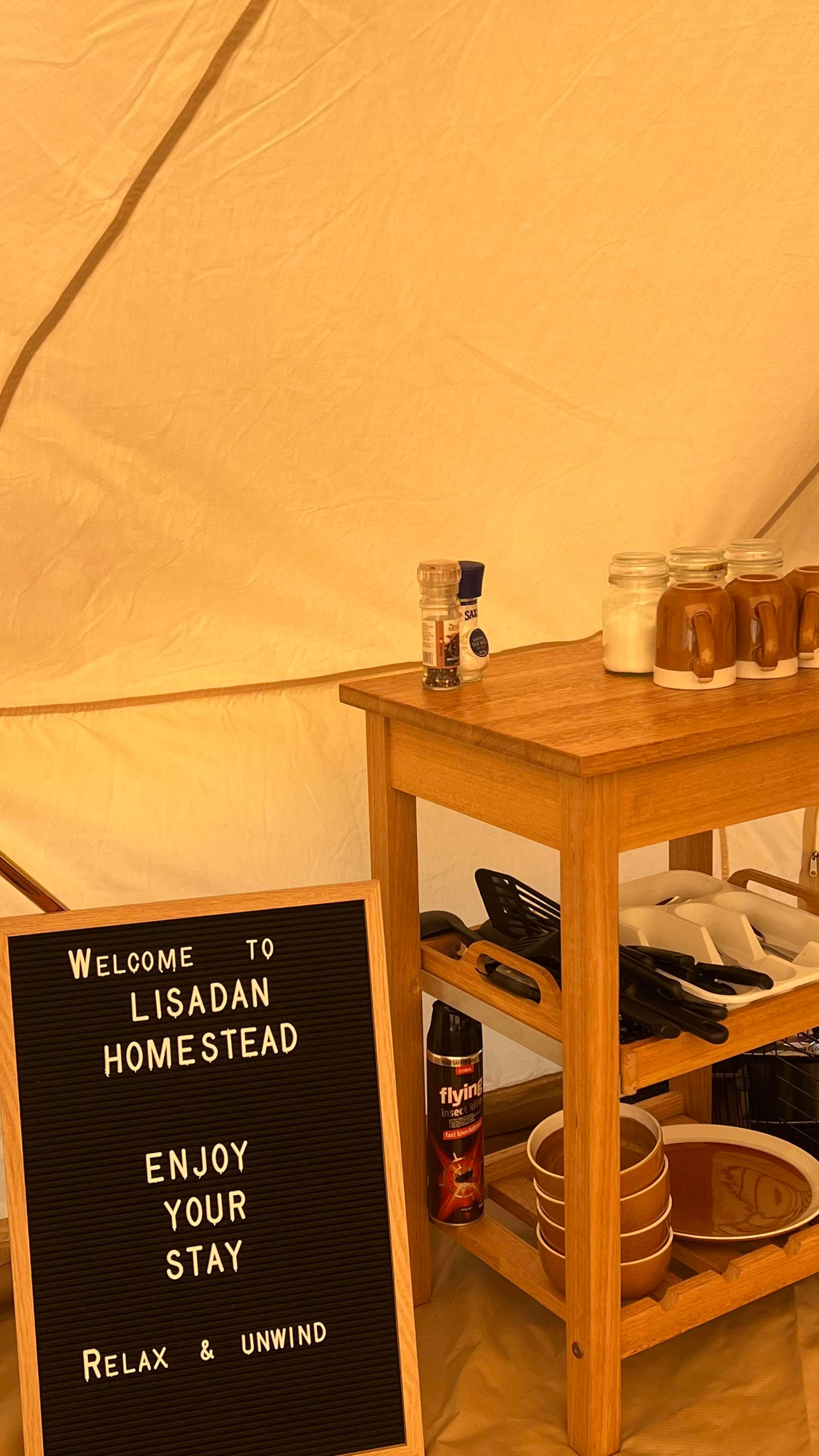 Jessica’s Dam camping ground is located near the old stables. Take a stroll to the viewing bench where you will experience the most beautiful and colourful sunsets and gorgeous views of the countryside. The composting toilet can be accessed near the bell tent.