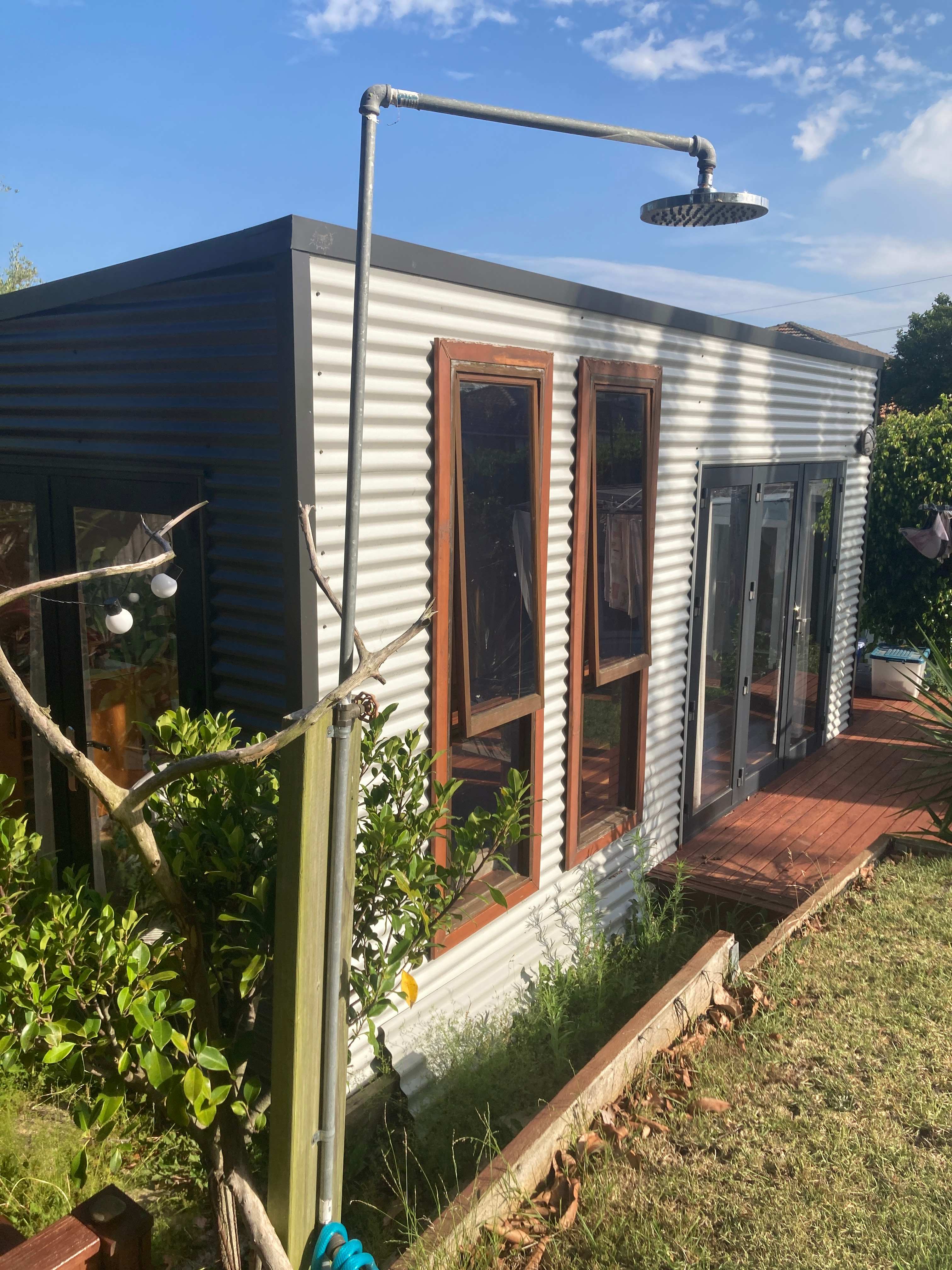 A studio room (2 available, price is for one room. If two studio rooms are required, add an extra $60) There is a separate outdoor bathroom with open air shower that is visible from the studio accomodation unless a blind is lowered. There is no sink in the studio. There is a sink in the bathroom only. Location is in the backyard of the owner’s cottage residence which was established in 1938, “The Printery” once operated as a printing factory and housed printing presses and machinery up to the 60's. The local newspaper “The Manly Daily” was printed on the property from 1940-41. Separate private entrance. The studio rental has a 4.6 star review on Airbnb. Quirky and unusual, Little Cat Oasis Garden Glamping studio offers something a little different to the usual local accomodation offerings. Stays are hosted in a one room garden studio which has a King size bed, 2 seater sofa, tv and tea/coffee making facilities. There is also private use of an adjacent outdoor tropical deck area.