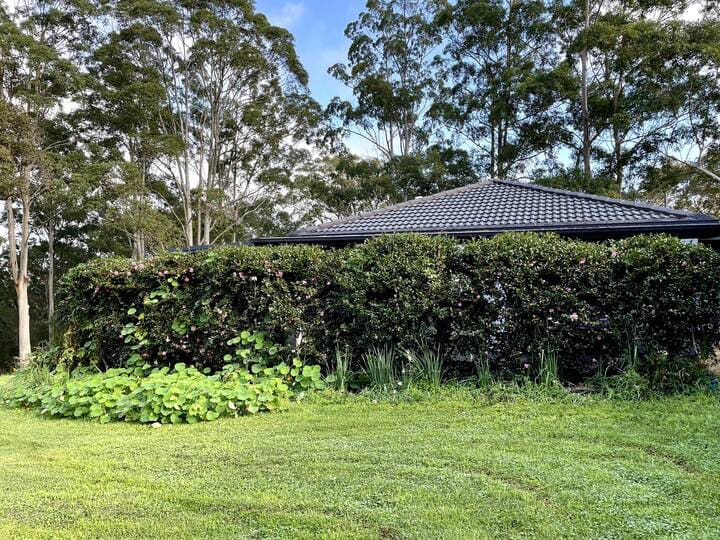 Kawalang is nestled on 100 acres of stunning bushland on Wonnarua Country, in the midst of the Watagan Forest in the Lower Hunter Valley. We’re just 1.5 hours from Sydney and Newcastle, and 45 minutes from the Central Coast. Nearby, you’ll find the Yengo Lookout and Rock Platform with remarkable Indigenous art, as well as wineries, horse farms, and the historic villages of Wollombi and Laguna. We grow food organically — from citrus, figs, and quinces to pears, mulberries, elderberries, finger limes, feijoas, garlic, vegetables, and greens — and strive to live sustainably. We keep waste to a minimum by composting food scraps and reducing plastic use. Most of our energy comes from solar panels, while rainwater collected in filtered tanks provides our water supply. An electric car charger is available for visitors to support their journey around the Valley. We live in harmony with the wildlife here — wombats, wallabies, possums, bandicoots, kookaburras, cockatoos, and more. On walks down to the bottom field, you’ll pass striking cliffs and rock formations, and discover a private valley with a meandering creek to explore and enjoy. We are about an hour from an exquisite lookout toward Big Yengo, a sacred mountain as significant to Aboriginal people in this region as Uluru is in Central Australia. For thousands of years, Aboriginal communities have gathered on this mountain. The area offers rock carvings, walking tracks, and campsites to explore. The name Kawalang was gifted to us by Aniwan Gamilaroi Wonnarua Elder Uncle Bill Smith. It means “abundance” in language, acknowledging the spirit of the land and the food and joy it brings.The Studio is a large open space with a fireplace, dining area, sofas and TV (for CDs or USB), queen bed, queen futon, and 2 king single beds as needed, a kitchenette, toilet and sink, stunning shower area adjacent to the sunroom. The is a large deck with dining table, chairs, sofa and hammock...put your feet up, have a snooze, take in the beautiful view, wildlife and conversation. There are games, books and CDs for all ages. A fire pit is available. Wander among the gardens where we grow food organically. We are happy to give you a tour of what's growing. Take a walk down to the bottom field in the valley, down a steep private road and back up through the bush. Explore the many wombat burrows on the valley floor or nestled along the meandering creek bank, experience the bird calls, lyrebirds, maybe a wombat or wallaby moving about, breathe in the magnificent trees and bush. Make your own meals; the kitchenette has all you need. With no cafes nearby, you can relax and we can cook for you with food grown organically at Kawalang. Dinners include a starter, main (salted chicken, nachos with our special sauce, pasta pesto), garden salad, Keith's sourdough bread, orange almond cake or other dessert, teas, coffees. Kawalang marmalades, chutneys, pickled veggies accompany the meal. Drinks are Elderflower 'bubbles', herbal teas from our lemon verbena and lemon-scented tea trees; cappuccinos or other coffees and teas; fresh-squeezed orange juice when oranges in season. $35pp. Breakfast includes fresh eggs, bacon/haloumi/mushrooms/greens, fresh orange juice when in season, Keith's sourdough, coffees, teas...or a stack of pancakes with seasonal fruit, yoghurt/cream, our marmalades, coffees, teas. $25pp. Our homemade chutneys, marmalades, other homemade goodies eg black garlic, salted lemon, teas, dried citrus, Indian Lime Pickle, herb collection (tumeric, garden herbs, garlic salt) are available to purchase for gifts or enjoy back home. Visit the Yengo Lookout and Rock Platform less than an hour away, historic Wollombi, Laguna Village...or just kick back and enjoy being at Kawalang...it's easy to just be here and feel the land.