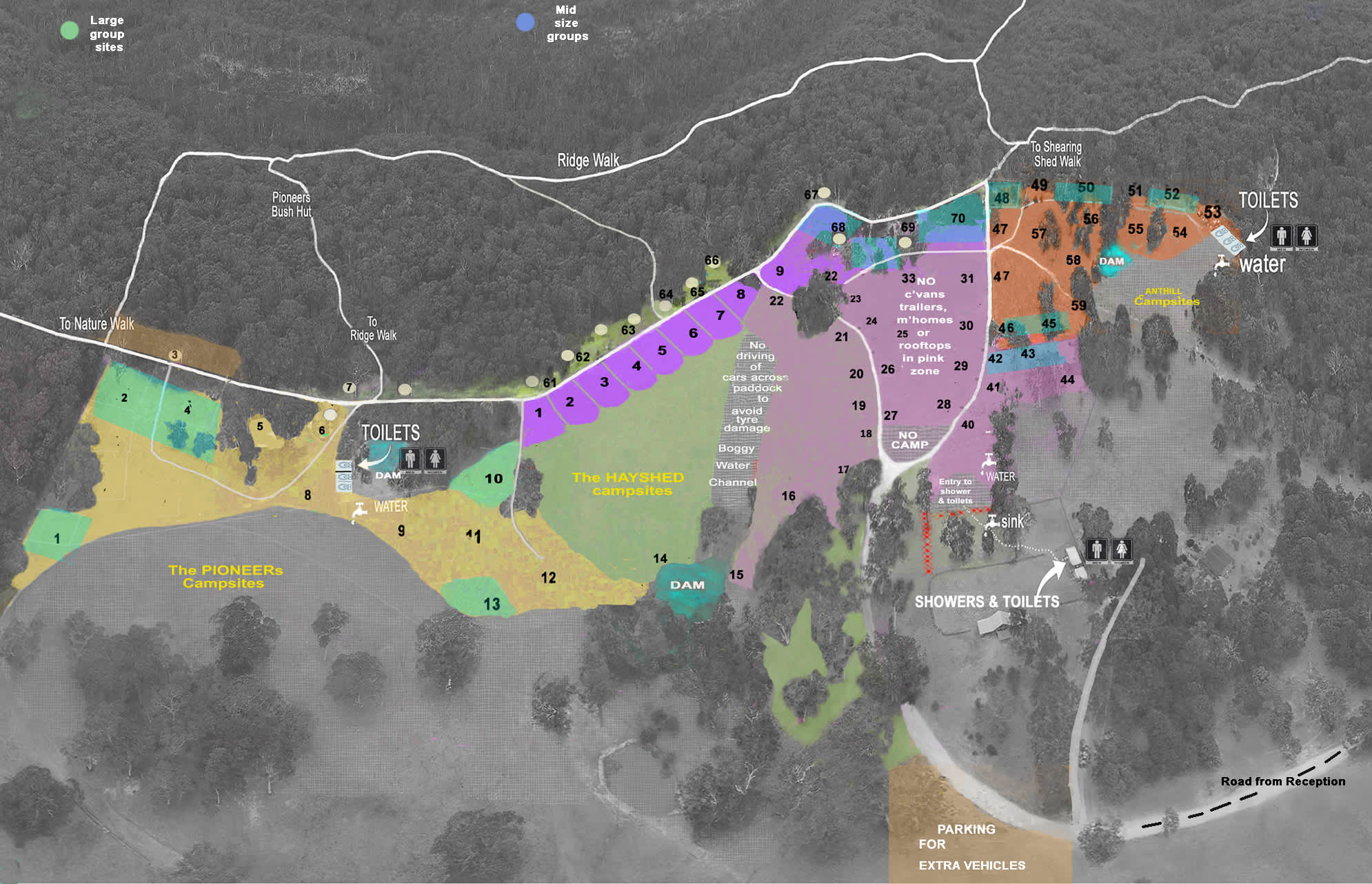 It’s a beautiful spot with stunning views of the Blue Mountains cliffs, making it the perfect place to unwind, de-stress, and enjoy clear, star-filled skies. Campfires are allowed, and while the toilets and bathrooms are older, they are clean and well maintained. Dogs are also welcome, which is a big plus.