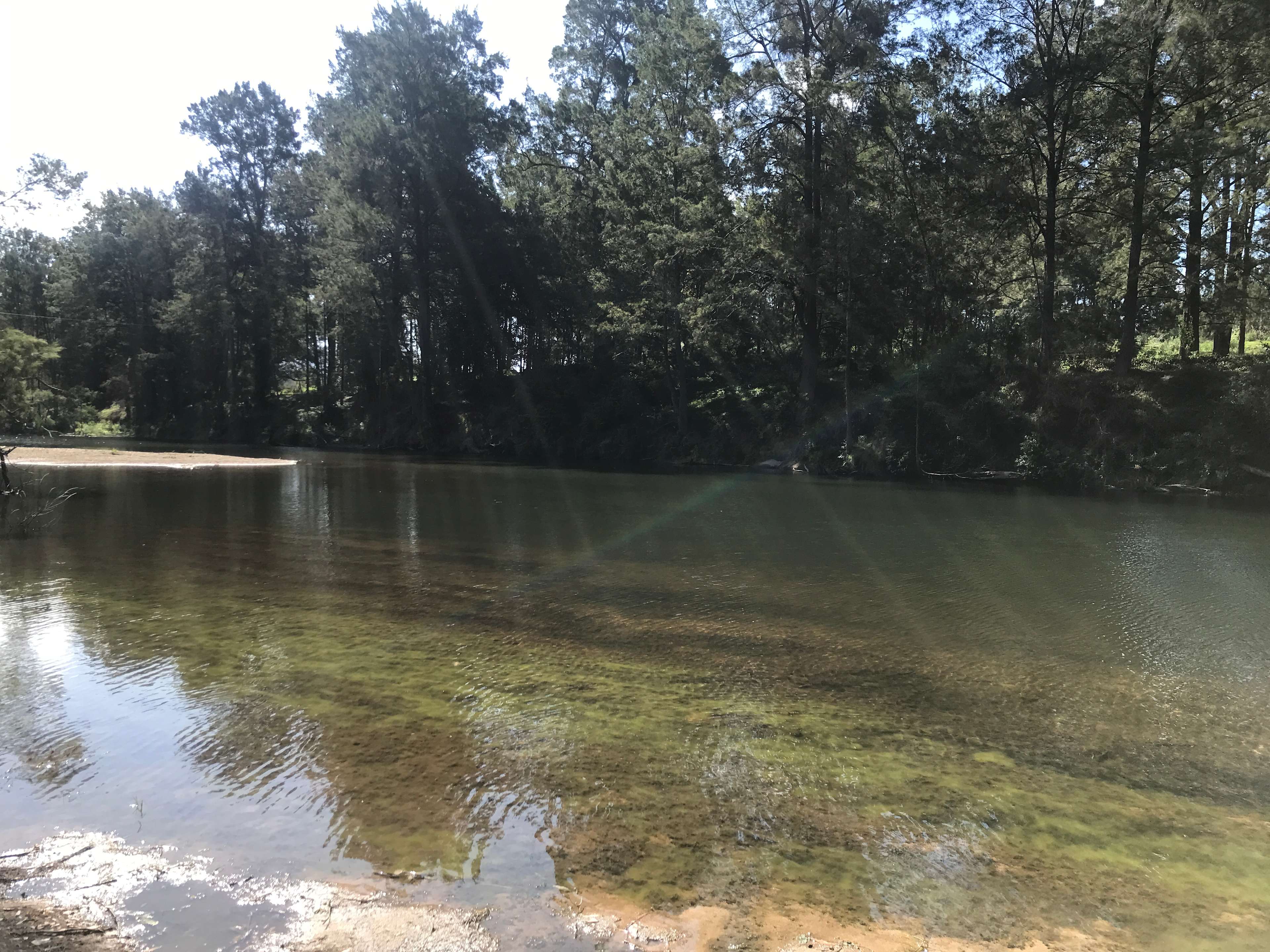Set up camp close to the riverbank in a grassy clear area near a redgum forest. There is a fire pit provided, you can bring wood or som is available for purchase .There are only 2 campsites so crowding is not a problem.Wildlife such as wombats, kangaroos wallabies, goanna and plenty of birds are all nearby.