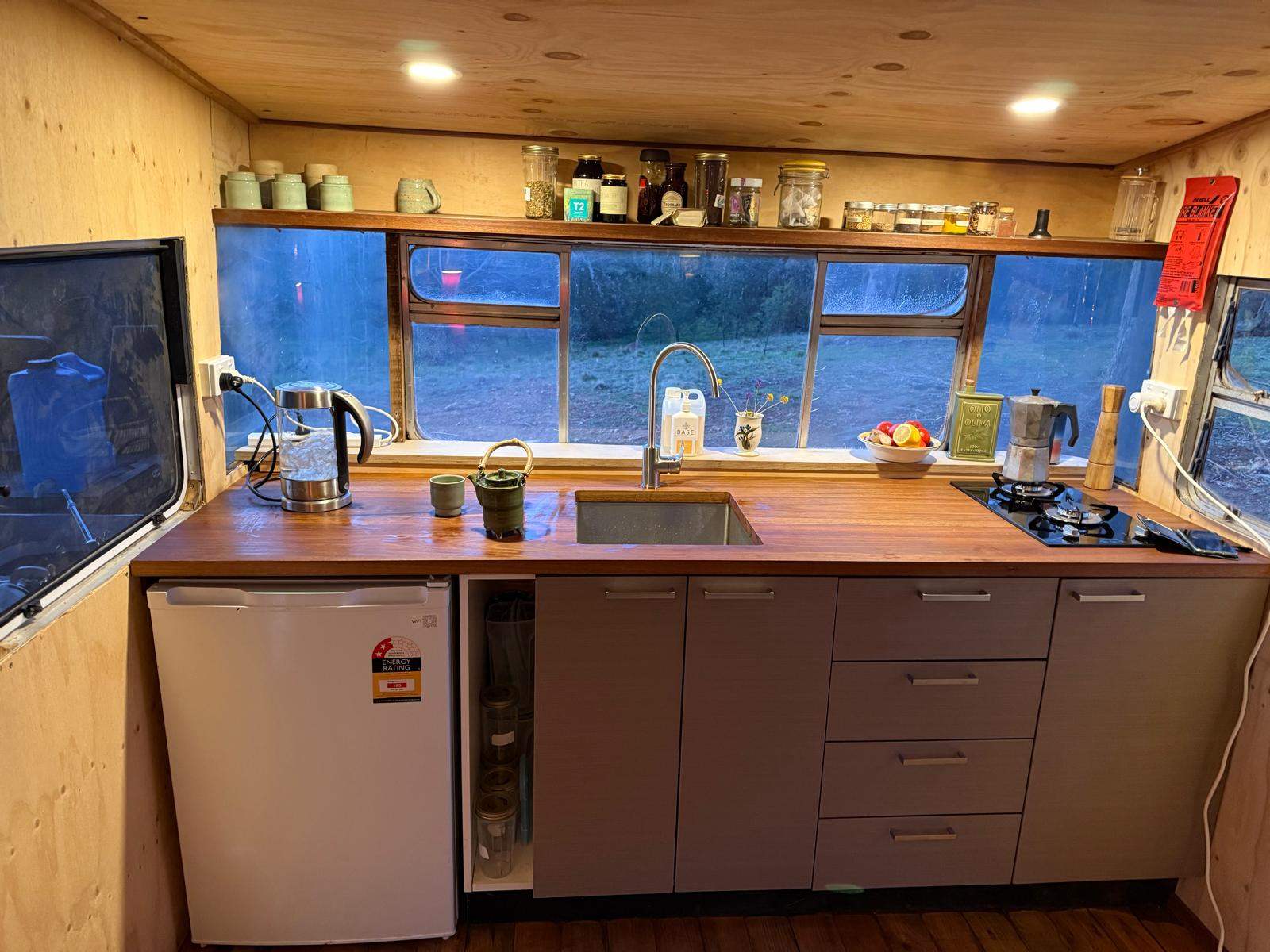 Under an hour from Canberra and three hours from Sydney, our Tiny Caravan is a gorgeous retreat—an absolute labour of love made mostly from reclaimed materials. Tucked away on 83 acres of box–gum grassy woodlands between Bungendore and Braidwood, it’s the perfect spot to unplug, write, wander the kangaroo trails, soak in an outdoor bath under the stars, or simply breathe a little deeper. If you’re keen for a simple, soulful escape, come stay here.
