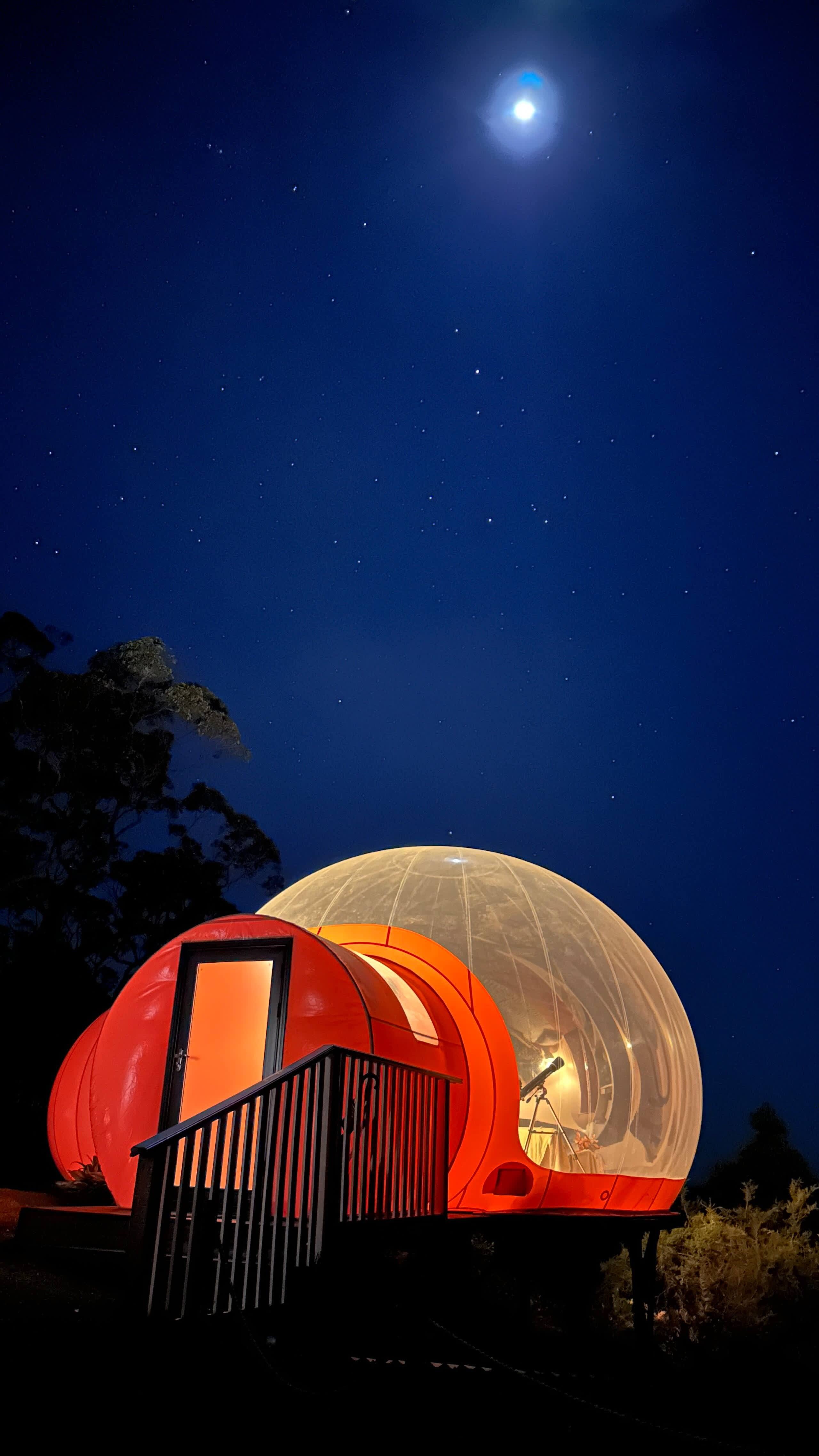 A Truly Magical Experience Imagine relaxing in a transparent dome, watching the sun set over the stunning Yengo National Park, followed by a unique and immersive night sleeping beneath a blanket of stars. Unwind in the hot water bathtub, soak in the views, and reconnect with the beauty of nature. Whether it’s for a special occasion or just to escape the city, this romantic dome is perfect for couples seeking an unforgettable retreat. Book now before the dates fill up.**A Truly Magical Experience** Imagine relaxing in a transparent Dome watching the Sun set over the stunning Yengo National Park, followed by a unique and immersive night sleeping beneath a blanket of stars. Unwind in the hot water bathtub, soak in the views, and reconnect with the beauty of nature. Whether it's for a special occasion or just to escape the city, this romantic Dome is perfect for couples looking for an unforgettable retreat. Book now before the dates fill up.