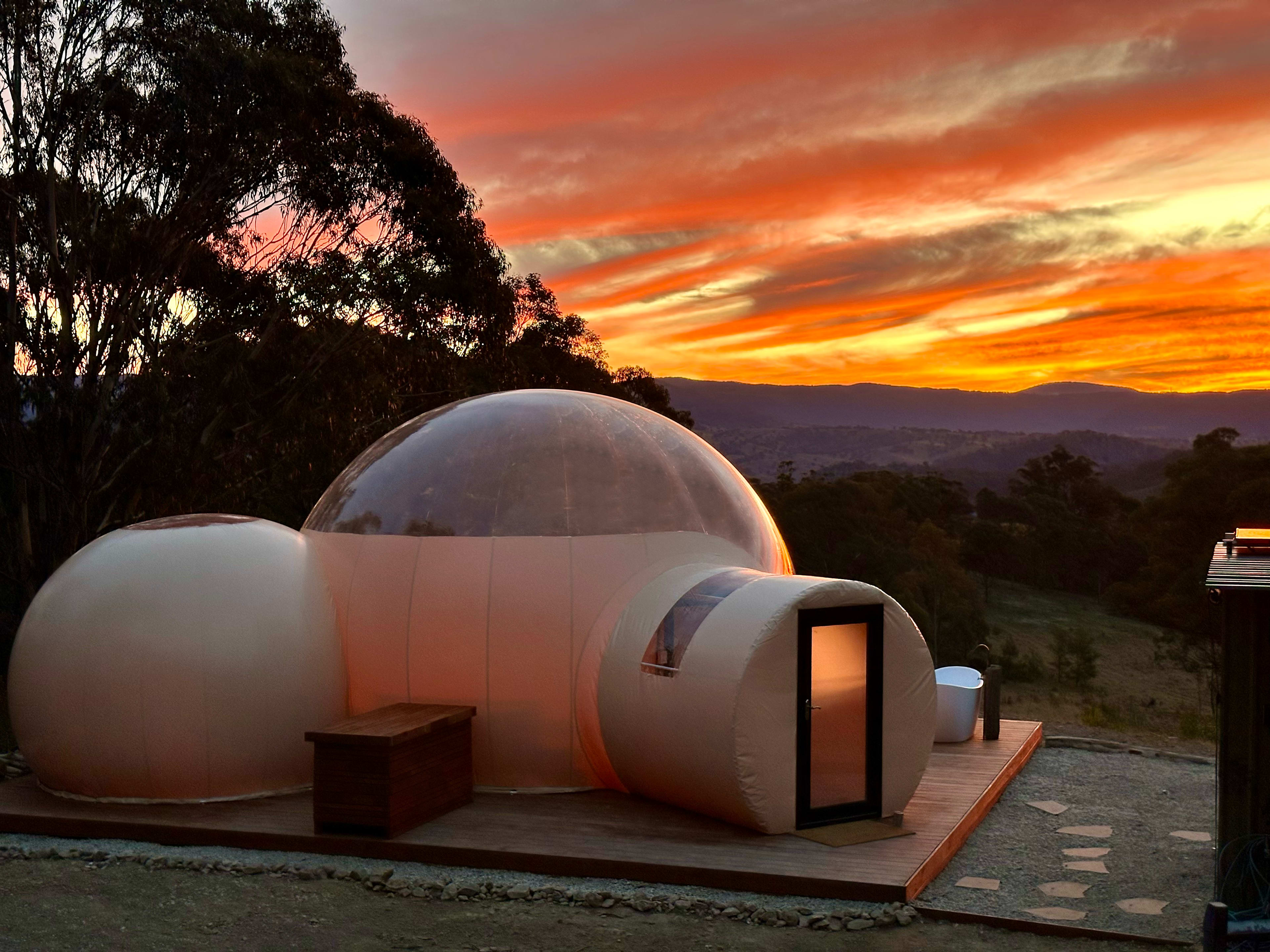 **A Truly Magical Experience** Imagine relaxing in a transparent Dome watching the Sun set over the stunning Blue Mountain view, followed by a unique and immersive night sleeping beneath a blanket of stars. Unwind in the hot water bathtub, soak in the views, and reconnect with the beauty of nature. Whether it's for a special occasion or just to escape the city, this romantic Dome is perfect for couples looking for an unforgettable retreat. Book now before the dates fill up! *PLEASE NOTE WE HAVE A STRICT NO PETS POLICY* To preserve the peaceful ambiance, Beyond Bubbles welcomes adult guests only. Please respect our space by following our house rules, and note that pets, though loved, cannot be accommodated here. This ensures the best experience for everyone.