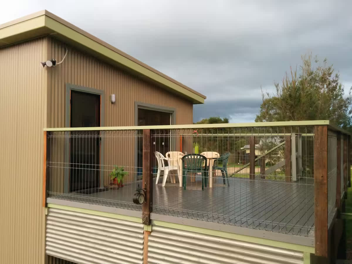 This is a traditional Aussie farm stay – no luxury trimmings, no en-suite, and no spa. The bathroom is separate from the sleeping quarters, around 50 metres across the lawn. The kitchenette includes a bar fridge and kettle, but no cooking facilities. Water for dishwashing can be heated in the kettle. Hot showers are available in the bathroom (no hot water in the kitchenette).