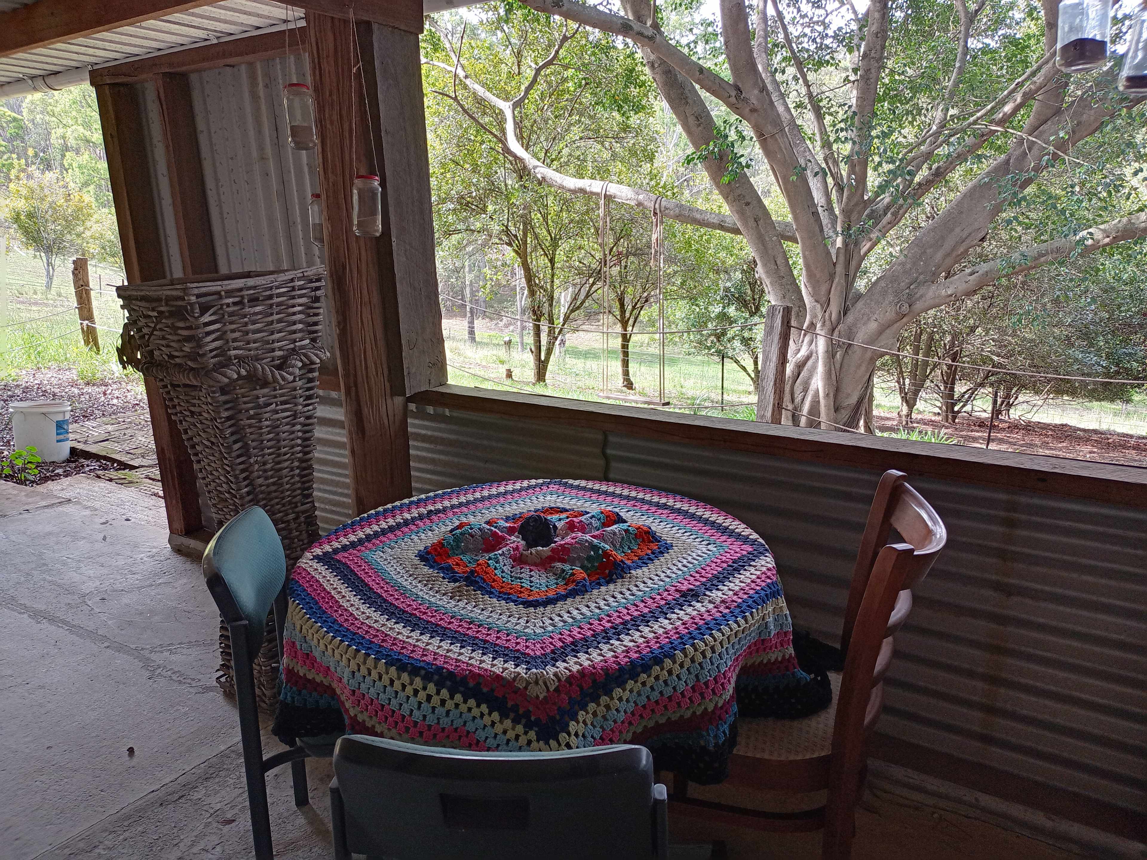 Set up camp overlooking the lilly filled lake surrounded by tall trees. Eat and relax in Shed 5. Tables, chairs, books and games for your use. Gaze at the night sky jammed with stars. Spot kangaroos nearby as they nibble on grass. Pets are welcome, leashed please. We have free range chickens....