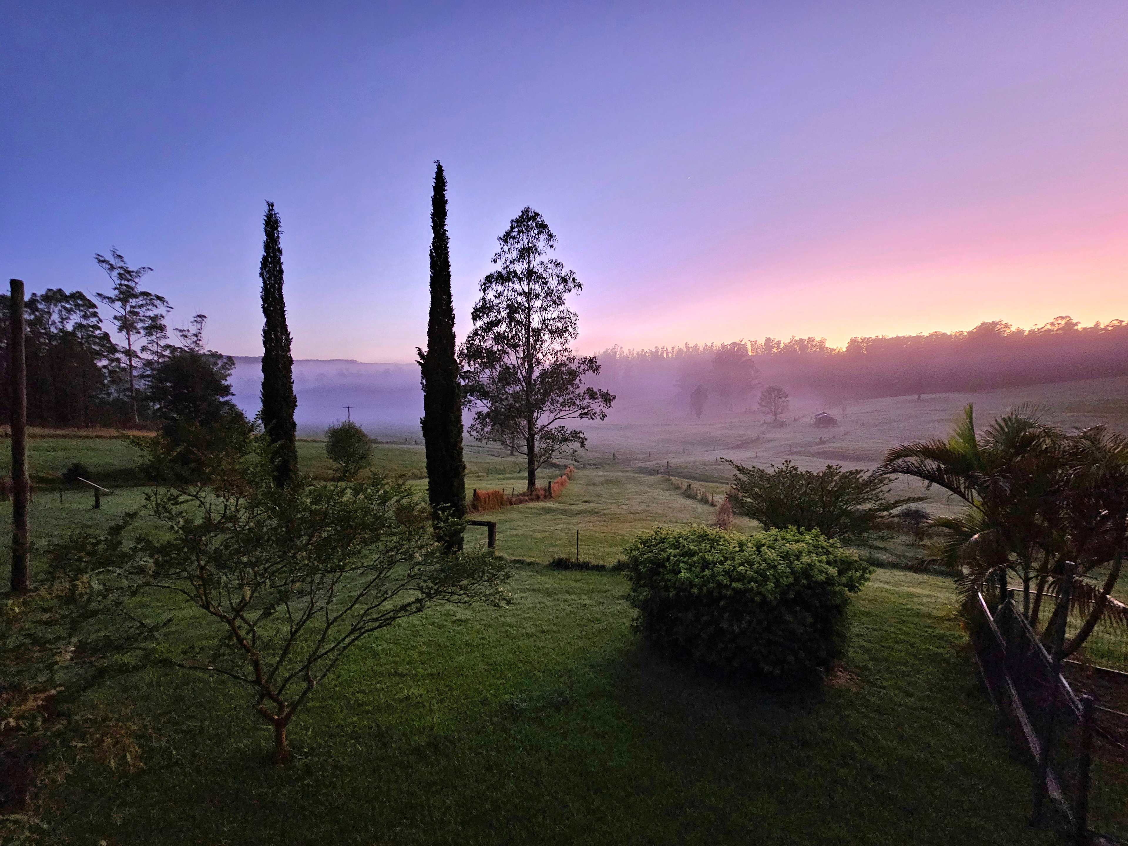 At The Good Life, we’re big on personal space. Every campsite is large, private and genuinely secluded, giving you the feeling you’re a long way from everyone and everything. Your own patch of paradise. No caravan awnings poking you in the eye, no surprise drop-ins, and no listening to your neighbour’s snoring, generator or life story. Bliss. Forget your phone alarm. Your morning wake-up call is the local kookaburra choir having a proper laugh at life. This is a true back-to-nature escape for anyone needing to pull up a stump, slow right down and properly unplug. If bird watching, stargazing or simply doing sweet nothing is your idea of a good time, you’ll fit right in. Dogs are very welcome. Keep them on a lead while you’re wandering the property, then let them be their goofy, happy selves back at camp. Campfires are practically mandatory. Every site has its own fire pit, and if you burn through your firewood faster than a pollie breaks a promise, we can sort you out with more for a small fee. Now for a quick reality check. We’re not the Hilton. In fact, we don’t provide any amenities at all. No toilets, no showers, no bins. Think of The Good Life as a safe, private slice of bush that feels like the middle of nowhere, because it pretty much is. You’ll need to be fully self-contained and take everything you bring in back out with you. Leave only footprints and good memories. What you do with your time is entirely up to you. Park yourself in a camp chair with a book, wander the farm, or lace up your boots and explore around 70 acres of bush tracks. When night falls, the stars put on a serious show and the silence is so complete you can actually hear yourself think. There’s no phone service and no Wi-Fi. Consider it a feature, not a bug. It’s the perfect excuse to ignore your emails. If you feel like venturing out, the Orara Valley and Coffs Coast offer stunning rainforests, beaches, waterfalls and swimming holes, all within a 30-minute drive.