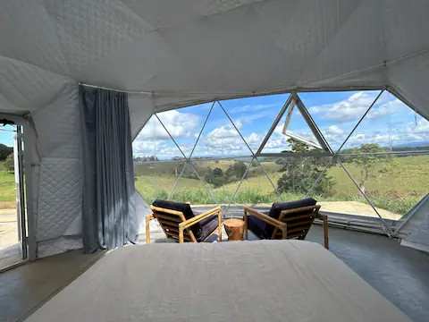 The dome is thoughtfully set up with all the comforts you need, including a very comfortable bed that made for a great night’s sleep. There are two domes and each dome has toilet and shower. Despite experiencing severe windy weather during our stay, we felt completely safe and secure inside, which really shows how well-constructed the dome is.