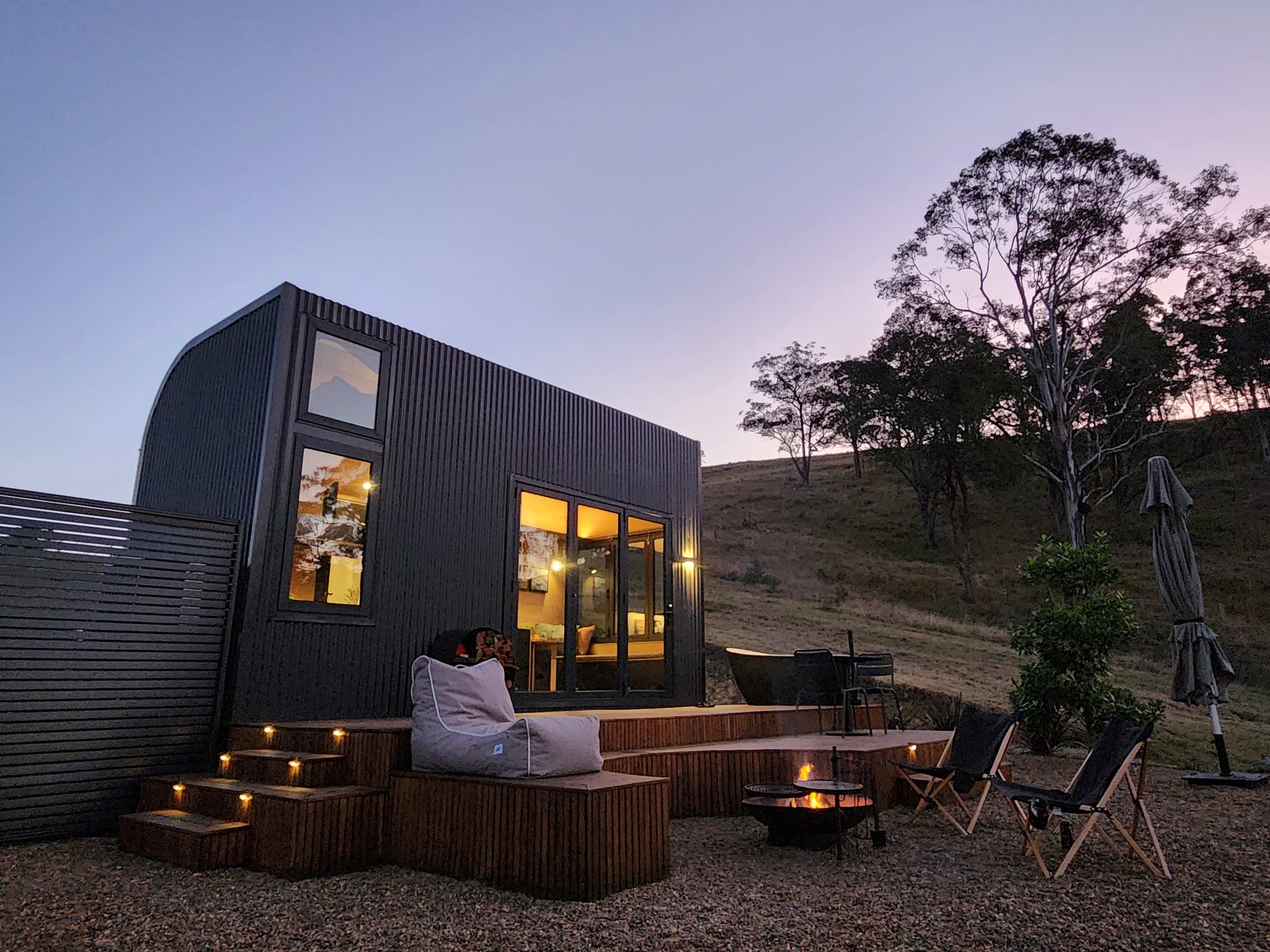 Tiny Three Ten is a simple, sophisticated and peaceful off-grid retreat nestled in the hills of Fosterton. It is a place to rewind, reset, reflect and connect with nature. Witness the mesmerising clarity of the starry night sky. Be humbled by the landscape that surrounds you. Connect with nature and escape from the pace of modern life. Spend a night under the stars, soak in the views in the outdoor bath, or share a glass of wine around the fire. Named after the distance from town (3km) and the acres it's nestled upon (10), Tiny Three Ten is an architecturally designed eco accommodation, built-in 2021, and thoughtfully crafted to make the most of the natural landscapes surrounding you. Tiny Three Ten is equipped with all the amenities you need for a comfortable, luxurious getaway. Still, it also comes with that sense of simplicity that gives you the space you need to feel blissfully removed from the rush of modern life. The minimalist design includes a queen loft bed and a separate single and is designed for a maximum of two guests. Also included is a quiet study nook. We don't have any WiFi, but there is Telstra and Optus mobile reception, so instead of television and computers, you can enjoy beautiful sunsets on the deck or immerse yourself in the silence. Whether it's retreat and relaxation you seek or soul-filling action and adventure, we've ensured that Tiny Three Ten has everything you need for an unforgettable getaway. A day of outdoor activities is easy from your base - explore the Fosterton loop and have a picnic or a cool dip in Williams River at the Fosterton bridge, or pedal the 25km of trails at the Dungog Common Mountain Bike Park. Tiny Three Ten has been created with a philosophy of conscious design and environmental sustainability - all the products within the cabin have been carefully selected based on their positive social and environmental impact. We'd love to welcome you to experience Tiny Three Ten for yourself.Tiny Three Ten is a simple, sophisticated and peaceful off-grid retreat nestled in the hills of Fosterton. It is a place to rewind, reset, reflect and connect with nature. Witness the mesmerising clarity of the starry night sky. Be humbled by the landscape that surrounds you. Connect with nature and escape from the pace of modern life. Spend a night under the stars, soak in the views in the outdoor bath, or share a glass of wine around the fire. Named after the distance from town (3km) and the acres it's nestled upon (10), Tiny Three Ten is an architecturally designed eco accommodation, built-in 2021, and thoughtfully crafted to make the most of the natural landscapes surrounding you. Tiny Three Ten is equipped with all the amenities you need for a comfortable, luxurious getaway. Still, it also comes with that sense of simplicity that gives you the space you need to feel blissfully removed from the rush of modern life. The minimalist design includes a queen loft bed and a separate single and is designed for a maximum of two guests. Also included is a quiet study nook. We don't have any WiFi, but there is Telstra and Optus mobile reception, so instead of television and computers, you can enjoy beautiful sunsets on the deck or immerse yourself in the silence. Whether it's retreat and relaxation you seek or soul-filling action and adventure, we've ensured that Tiny Three Ten has everything you need for an unforgettable getaway. A day of outdoor activities is easy from your base - Explore the Fosterton loop and have a picnic or a cool dip in Williams River at the Fosterton bridge, or pedal the 25kms of trails at the Dungog Common Mountain Bike Park. Tiny Three Ten has been created with a philosophy of conscious design and environmental sustainability - all the products within the cabin have been carefully selected based on their positive social and environmental impact. We'd love to welcome you to experience Tiny Three Ten for yourself.