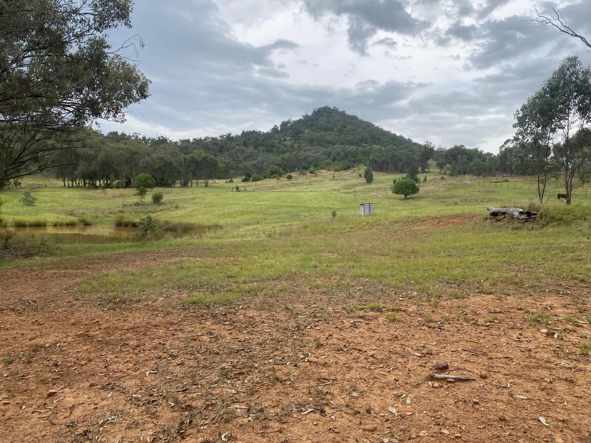 Tooloogan camp spot 1 is situated near our small dam. There is plenty of room to walk around and have dogs. Pet owners need to be responsible to ensure their animals do not chase the native wildlife or our stock. you can see from the pictures that depending on where you set up in this location you can be looking at the mountain or at the dam.