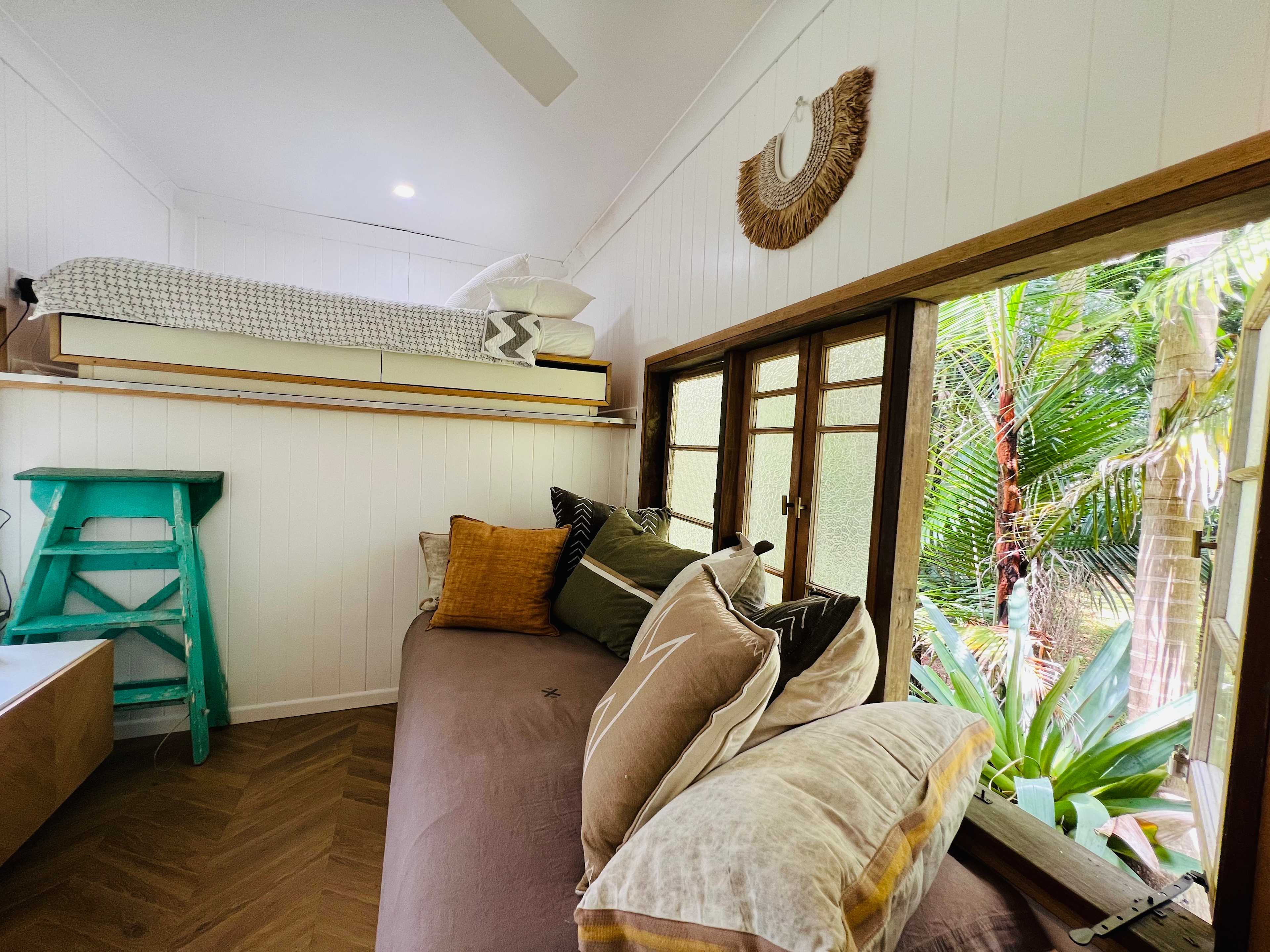 Established tropical gardens with over 70 species of palm trees and numerous fruit trees. Our property represents our love of ecology and we are glad we can share it with other nature lovers. Our truck house has a massive deck complete with bathtub for soaking. A fully functional kitchen with a lovely large shower and flush toilet. Is off grid on standalone solar power and rain water. You will be delighted with our creature comforts from high quality bed linen from abode & adairs, bathroom robes for two if you plan a romantic adventure, ecological dishwashing liquid and bathroom products including grown organic moisturiser. All the touches to make for an earth friendly and luxurious stay. We welcome you to come and enjoy the serenity of this place with us.