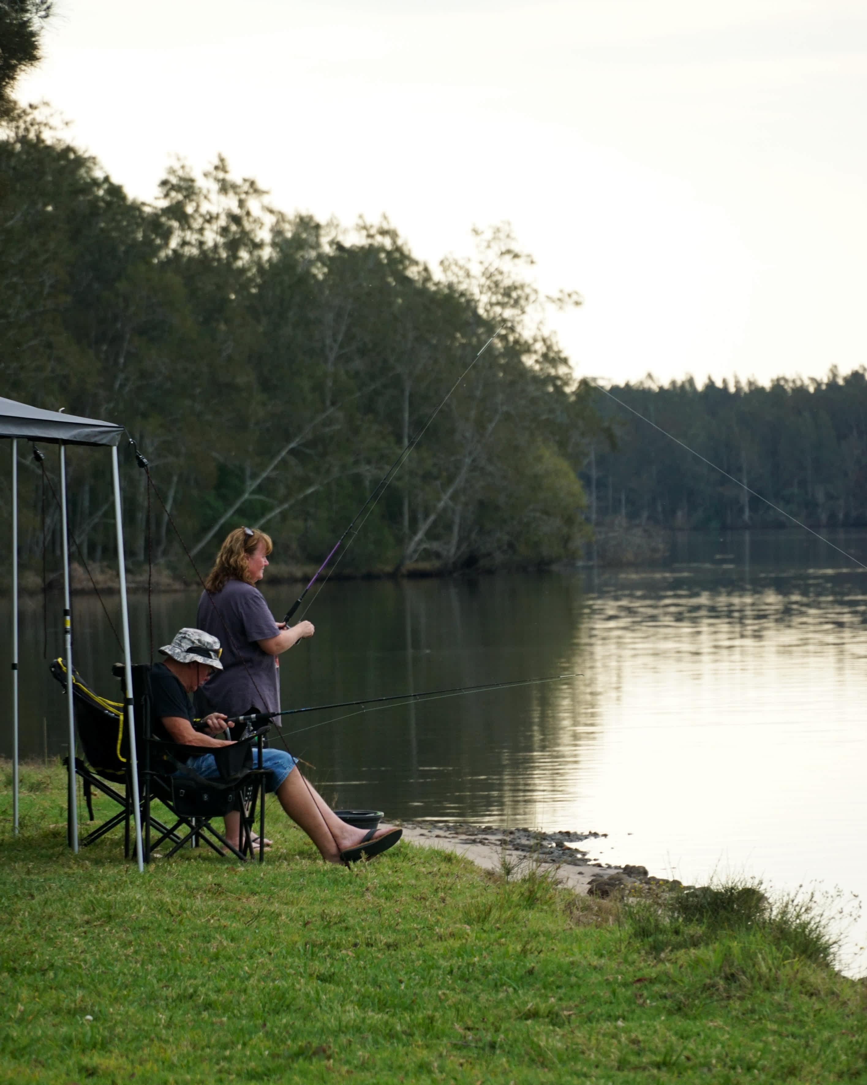 Welcome to Two Rivers ~ Where two waterways meet and the story of our farm begins. Currently at Two Rivers Farm, we only welcome self-sufficient, off-grid campers with maximum of 6 vans and 20 people though this will change as we continue to build and evolve the property. For now, you can choose between three distinctly beautiful spots each with its own perks and shared access to all the farm’s magic. Camp at Ringer’s Rest: Once the dairy farmer’s quarters, this rustic shed is now a bush-pub style gathering place. Settle by the fire, share stories and music, and raise a glass to farm camaraderie while overlooking the paddocks. Camp nearby and make this communal space your cosy hub. Camp at Riverside Hilltop: For sweeping views, set up at the Hilltop overlooking the river. Launch your fishing rods, canoes, SUPs or even a jet ski (no jetty, so launch from the riverbank). Watch swans glide, birds greet the dawn, and deer pass by as the river becomes your playground. Your Hosts: Hayden and Ash live on-site and will guide you to your spot whether riverside or hilltop. They’ll give you the farm rundown, share local tips, and help you feel right at home. The Area: Two Rivers is tucked away in Coolongolook on the Mid North Coast, with waterways flowing right out to Forster—just a 10-minute boat ride away. Nearby Nabiac offers the friendly Nabiac Hotel for a hearty meal or drink, plus The Artisan Farmer, a farm-to-table café, bakery, deli, and butcher showcasing local produce. What to Bring: We welcome self-sufficient campers only, so pack your swag, tent, campervan, or RV. At present there are no amenities, but exciting plans are underway for a camp kitchen and more facilities as the farm grows.