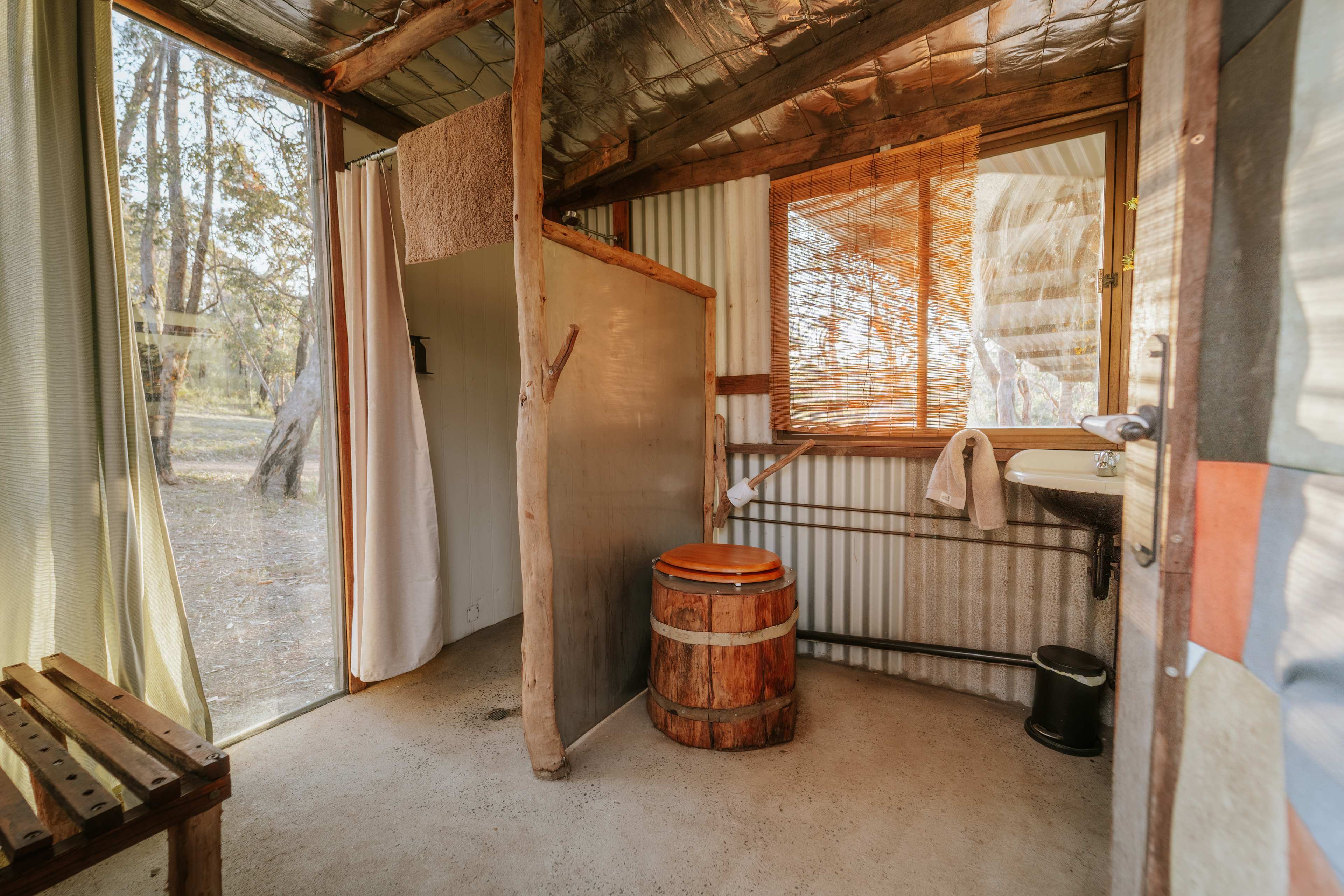 Price includes: The Grounded Getaway - Minimum 2 nights stay, charcuterie board and welcome drink, induction walk and nighttime glowworms tour. Luxury glamping tent with shared amenities including common house with dining, kitchen and lounge area. Experience the beauty and adventure of the Australian bush in the Tea Tree Tipi. Perched on a raised platform, the tipi features a window overlooking the escarpment and creek and an adjacent window for a through breeze. Inside, you’ll find luxury bedding in either a king size or 2 single bed layout, along with a solar powered battery to power ambient lights and a fan on those balmy nights and a wood burner for the colder evenings. Guests have access to shared facilities, including a communal kitchen, dining and lounge area, hot showers, compostable toilets, and a fire pit for evenings under the stars. We’ve thought of all the little things you need while glamping, so you can simply arrive, unwind, and enjoy the calm simplicity of life in the bush. The Tea Tree Tipi is the ideal space to reconnect, recharge, and share a one-of-a-kind Australian nature stay with family or friends.
