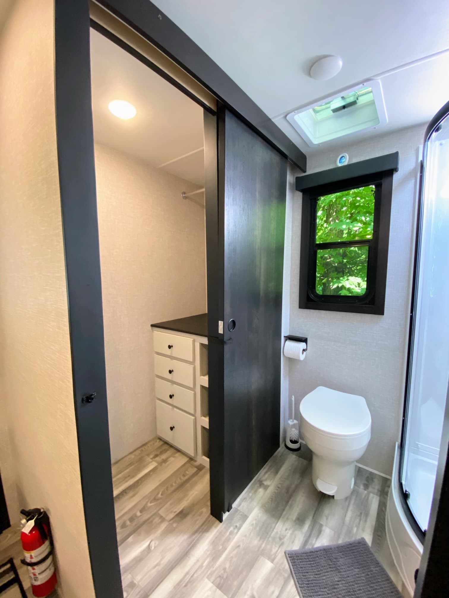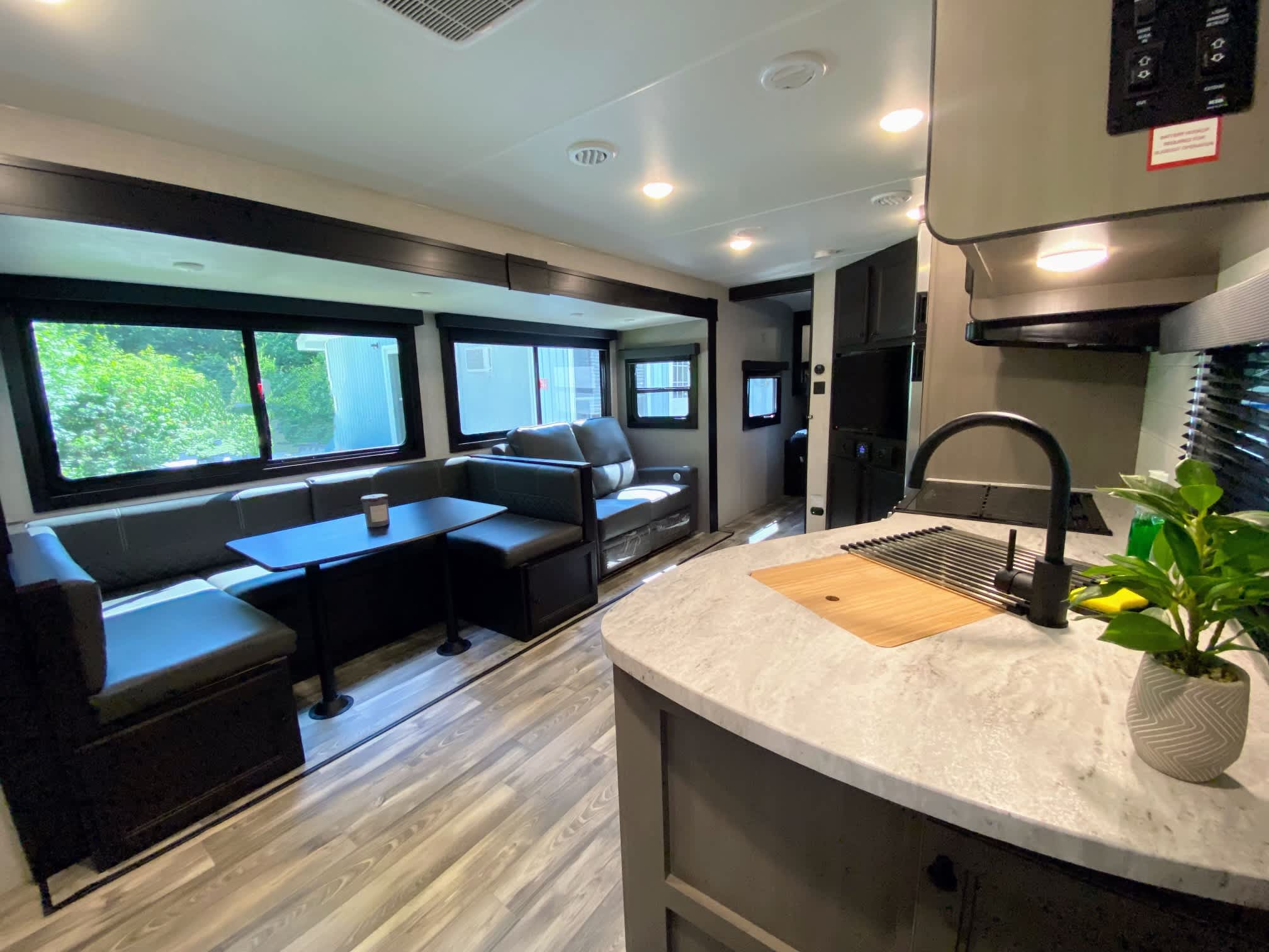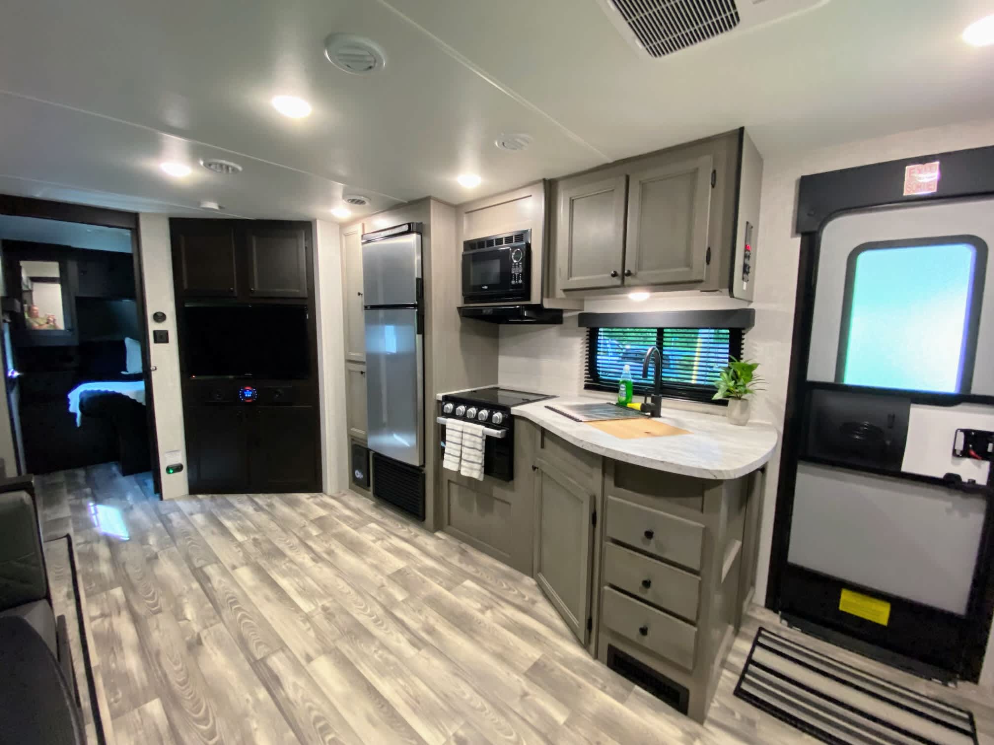Quiet and hidden forest getaway in beautiful South River. Brand new StarCraft Trailer with all the bells and whistles to keep you comfortable rain or shine. Trailer includes: - Lots of natural light with plenty of windows! - A/C and heating with electric/propane hot water tank. - Stainless Fridge/freezer combo with mini outdoor fridge. - Propane range top with oven combo. - Large sink with cutting board and dish rack toppers. - Full bathroom/shower with skylight. - Queen size bed with privacy door. - Reclining massage and heated love seat to relax in front of a 39” smart TV on rainy days. (2 Included trays to act as work stations.) - Breakfast banquette seats 4 comfortably and also collapses down into a double bed. - Lots of storage in bathroom and bedroom. - Power slide out and awning with outdoor lighting.