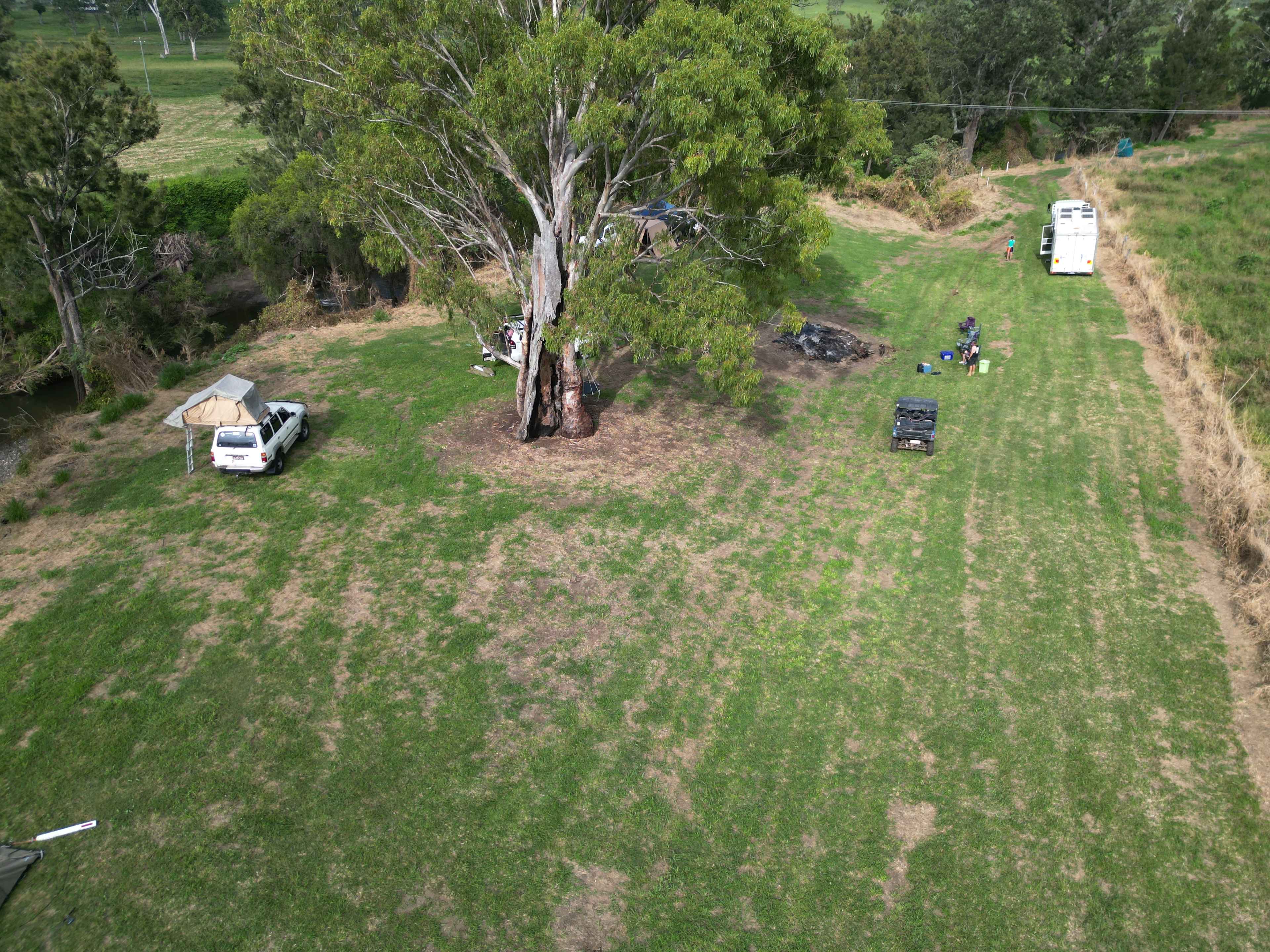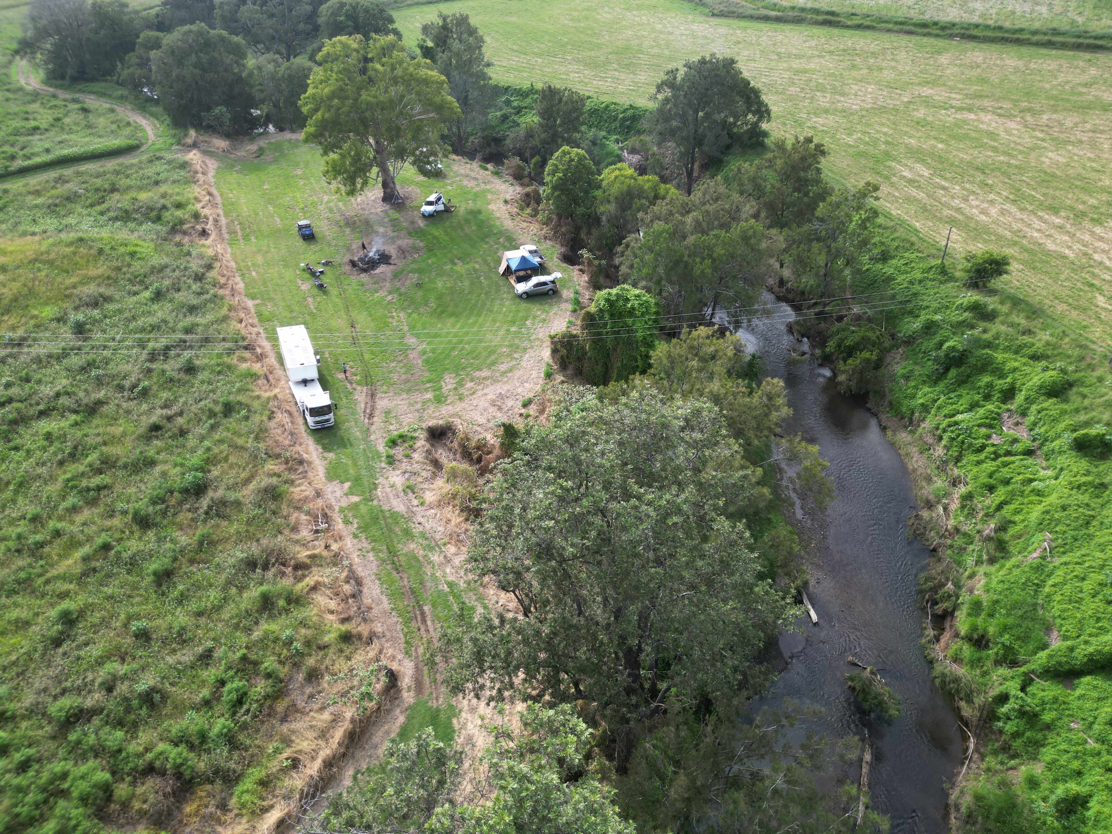 Flat grassed land on top of the creek bank. Short walk down bank via a cleared path to waters edge, is a little steep. There is plenty of shade down by the creek. Perfect to sit in with a cold beverage. Can accommodate about 3 caravans/camper trailers or RVs comfortably. Extra tents or swags accepted. Great area for a family or group that don't want to be parked beside strangers. Please note that there are 2 other sites on Gumtree camp also, about 100m away.