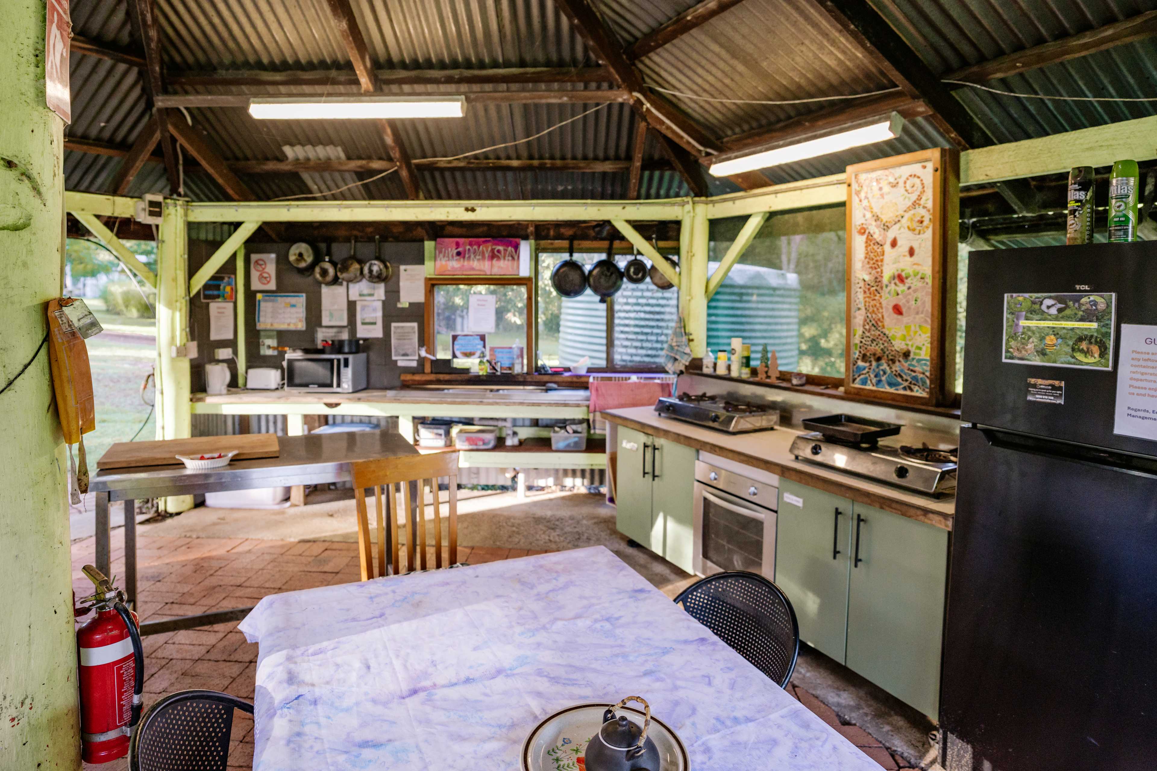We are an accommodation camping ground within Crystal Waters Eco Village which is also a Wildlife Sanctuary. NOTE: No Dogs or Cats allowed. There are Toilets, Showers and Camp kitchen use included in the fees. Camping at the Eco Park is great for those who enjoy the relaxing bush setting, birds and wildlife and gazing into the clear night sky. We have an abundance of Kangaroos, Wallabies, other Australian native wildlife and many Bird varieties which is an attraction for many visitors. With powered or unpowered camping/van sites, plus bunkhouse single beds and private queen bedrooms, there are options to suit most visitors. A stay at the EcoPark is a great getaway from the stresses of city living. We provide amenities block with male and female toilets, hot showers, laundry, and a covered Camp Kitchen with cooking facilities, fridges and an oven. The local village green is a 5-minute walk, providing guests with delicious food options from the Coffee Shop or the Sourdough Bakery (some times like Saturday mornings. The Village green is also host to monthly markets and music events, children's playground, shared office space, book exchange, weekly pingpong and exercise groups. Thursdays to Sunday the Coffee Shop is open with ample space on the Deck for breakfast or lunch and catch up with family and friends, or meet a new face. The Cafe is always a favourite for the whole family. The Bakery is Open Friday nights, Saturday and Wednesday mornings for Bread, Pastries and Coffees. The Conondale General store is a 10-minute drive away and Maleny is a short 25-minute drive filled with quaint cafes, Woolworths, IGA, and many attractive stores, art galleries and a bustling music venue. Public Free Wi-fi is available at the Ecopark and the Village Green/Deck.
