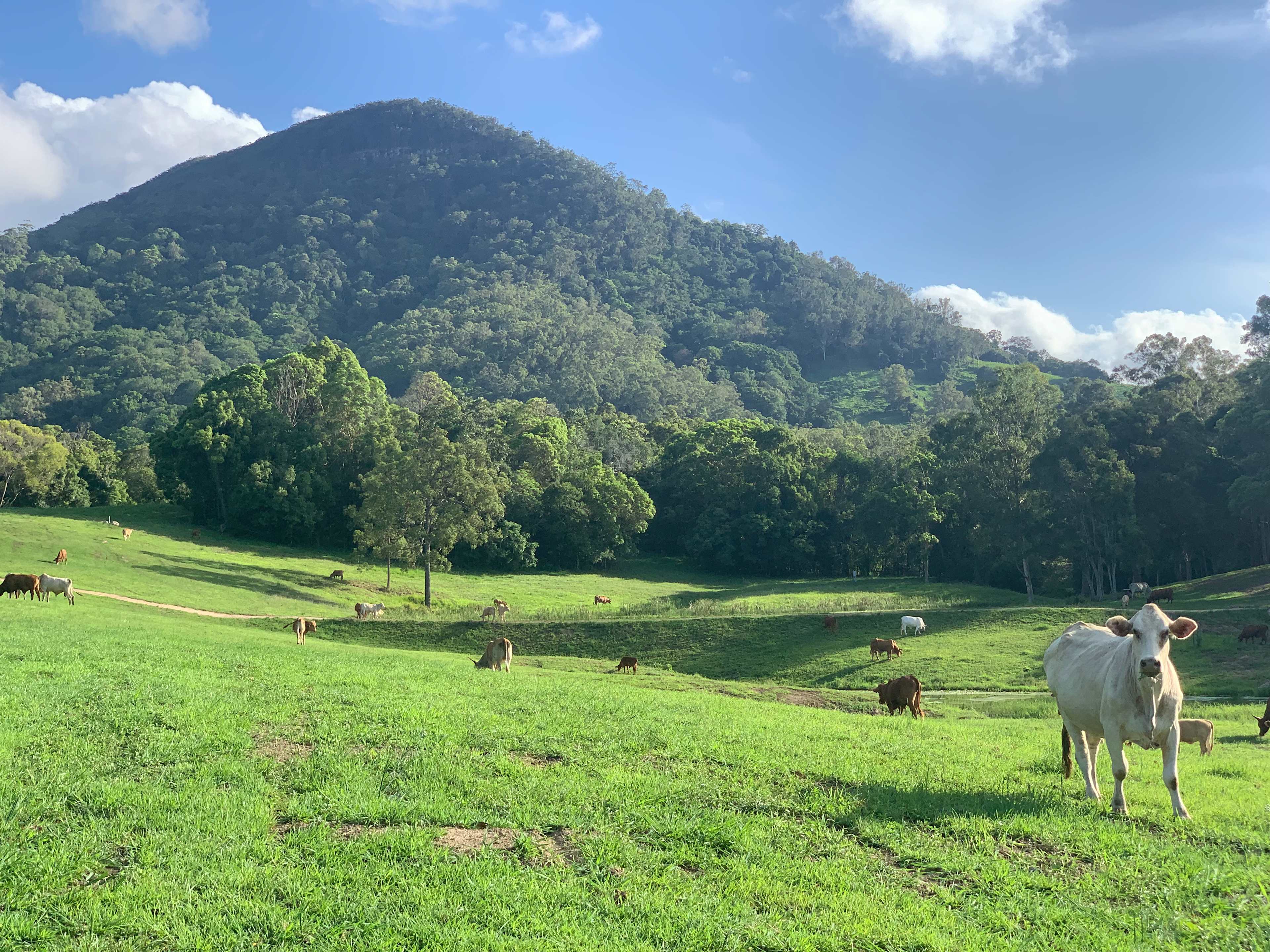This spectacular 200 acres is a working cattle property and has a 10-acre beautiful, grassed area at the foot of Mount Eerwah, sectioned off for self-contained caravans and motor homes. Unlimited water available. We have a lovely 3km half mountain hike with fabulous views for campers. Vans can be disconnected so you can explore the local areas. There are no amenities available, so campers must be self contained (with your own toilet/shower) and leave no trace.