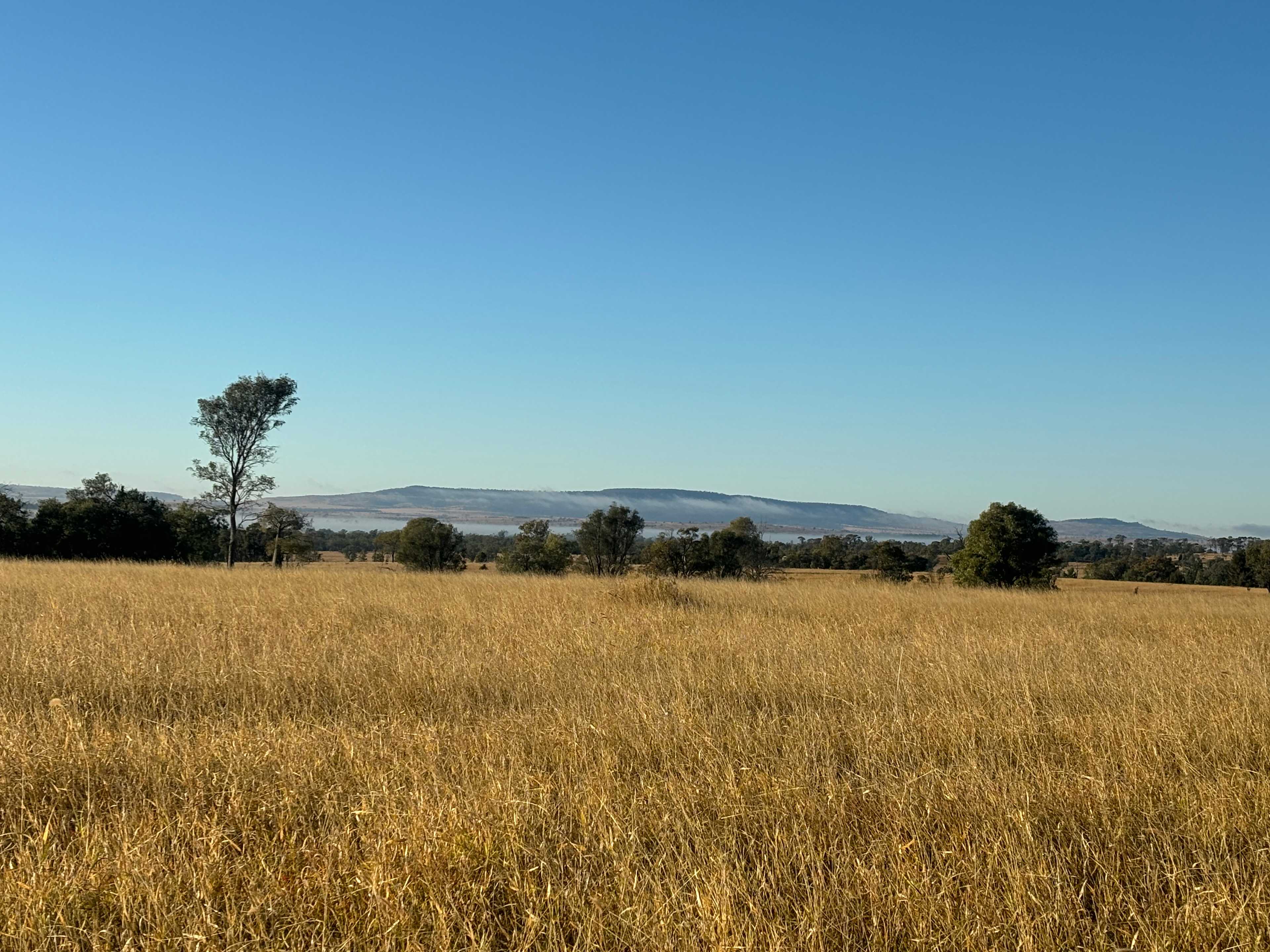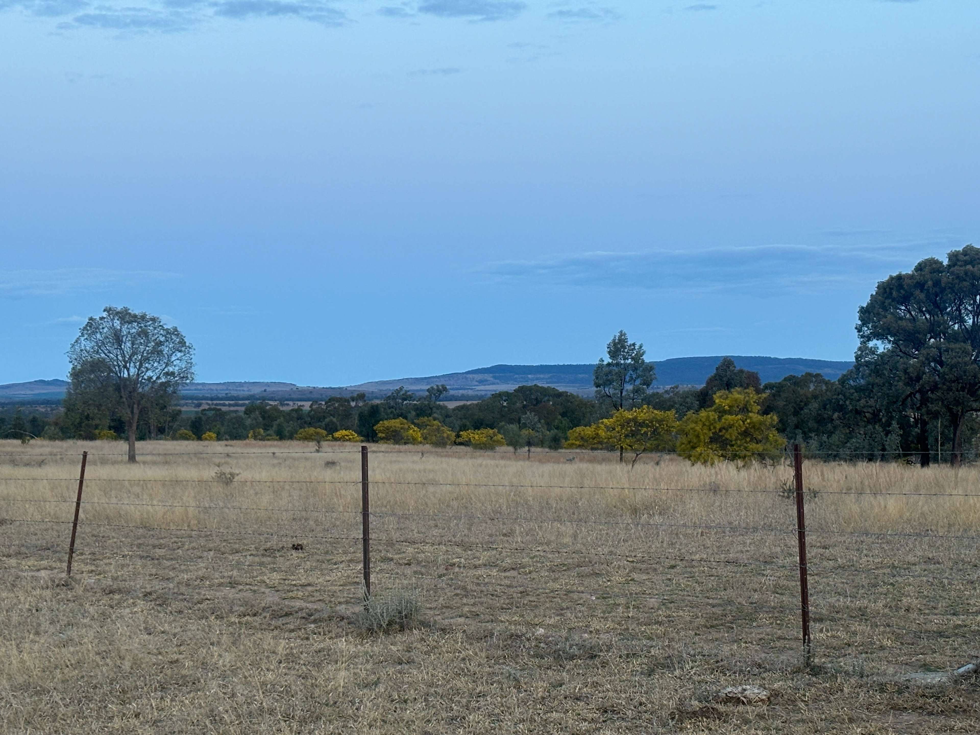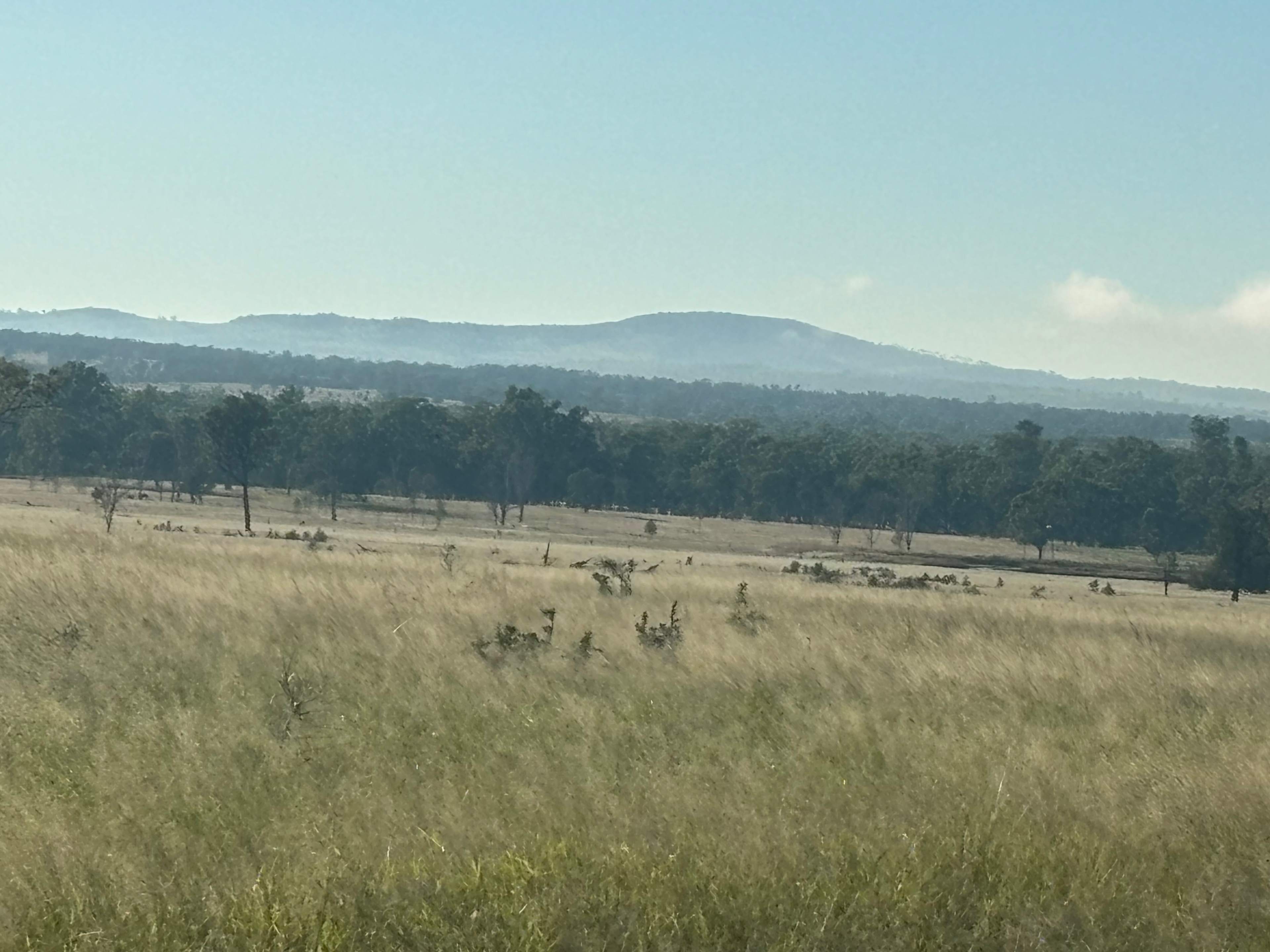 Undulating mixture of timber and clear spaces. Higher hills have great view of Grafton Range. By arrangement area close to homestead is available. Bush walking. Bird watching around waterhole. Shallow water canoeing. Short drive to Grass tree area. Beautiful drive through flowering wattle and cabbage gums in early spring. Great for photos.