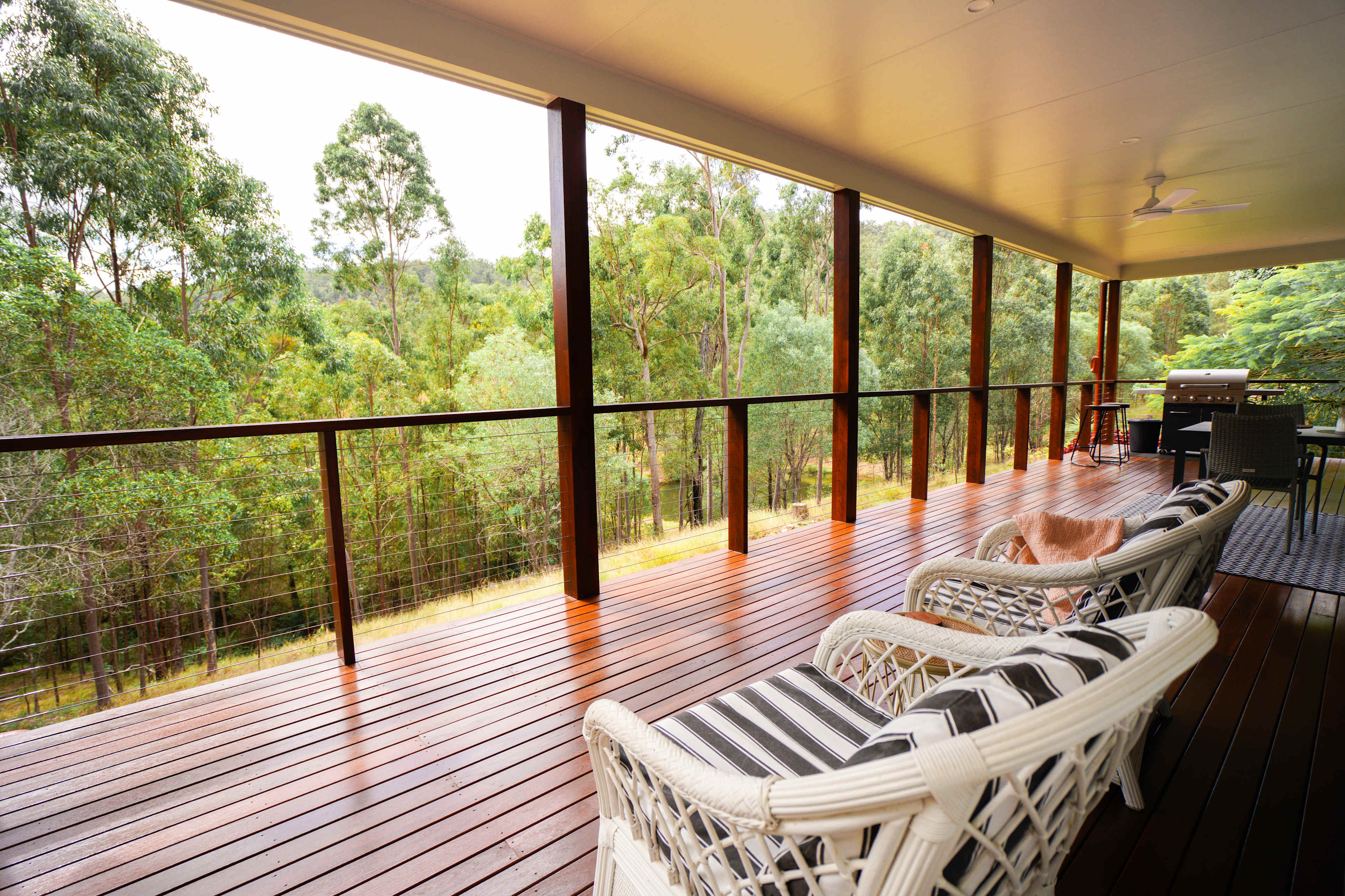 Welcome to Whispers highly acclaimed private couples’ retreat, nestled among the rolling hills of Glastonbury just 15 minutes from Gympie. Designed exclusively with couples in mind, this romantic farmstay offers complete privacy and uninterrupted views overlooking a billabong from the large balcony. Highlights of your stay:- • Private cottage set on 60 acres • Nestled among tranquil gardens and native bushland • Expansive balcony for relaxing and soaking in the views • Plush Super King bed • Indulgent double spa with Sheridan bath towels • Cozy fireplace plus outdoor fire pit • Complimentary breakfast basket on arrival This new sustainable designer-built cottage is light-filled and spacious, featuring high-end fixtures and finishes, modern country style décor, original artwork, and locally sourced timber which adorns the central hearth. Seasonal decor styling ensures each stay feels fresh and unique. Enjoy a fully equipped kitchen with SMEG appliances, reverse-cycle air conditioning, ceiling fans, and an in built smart TV provides year-round comfort and convenience. Complimentary inclusions include a breakfast basket, refreshments, tea chest, Vittoria coffee, plus milk and orange juice. Relax on the spacious balcony with bbq area, outdoor lounges and a dining area, perfect to enjoy sunrise coffees, sunset drinks and sweeping rural views. Inside, unwind by the fireplace, enjoy the double spa bath or retreat to the super king bed for a peaceful night’s sleep. A full seperate bathroom with walk in shower and toilet which can be closed off for added privacy. Enhance your stay with optional extras offered after placing your booking which include a grazing box, grass fed beef Bbq packs, spa treatments, campfire on sunset, cattle feeding sessions, farm to table tours and we can even style a pop up picnic for you to pop the big question or just to say I love you anytime of the year.