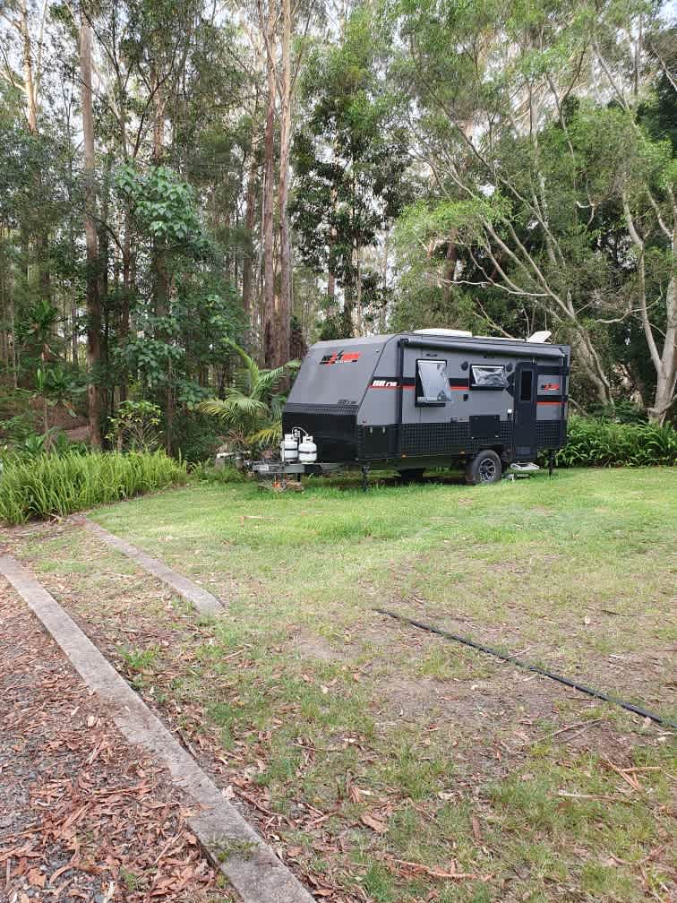Our little slice of paradise is on 17 acres only 5 minutes from the cute township of Palmwoods on the popular Sunshine Coast. Our property is approximately half natural bushland and half grazing paddocks for our horses, pet steer, goats and a guard llama. We have 2 flat campsites in the quiet and picturesque bushland. Our top bush site is quite large and flat and surrounded by bush and is lovely and quiet. Our road is super quiet and peaceful, yet we are only 25 mins from the gorgeous beaches of the Sunny Coast and 10-15 minutes from the beautiful village of Montville up on the range. There are numerous places to visit within 40 minutes from here.