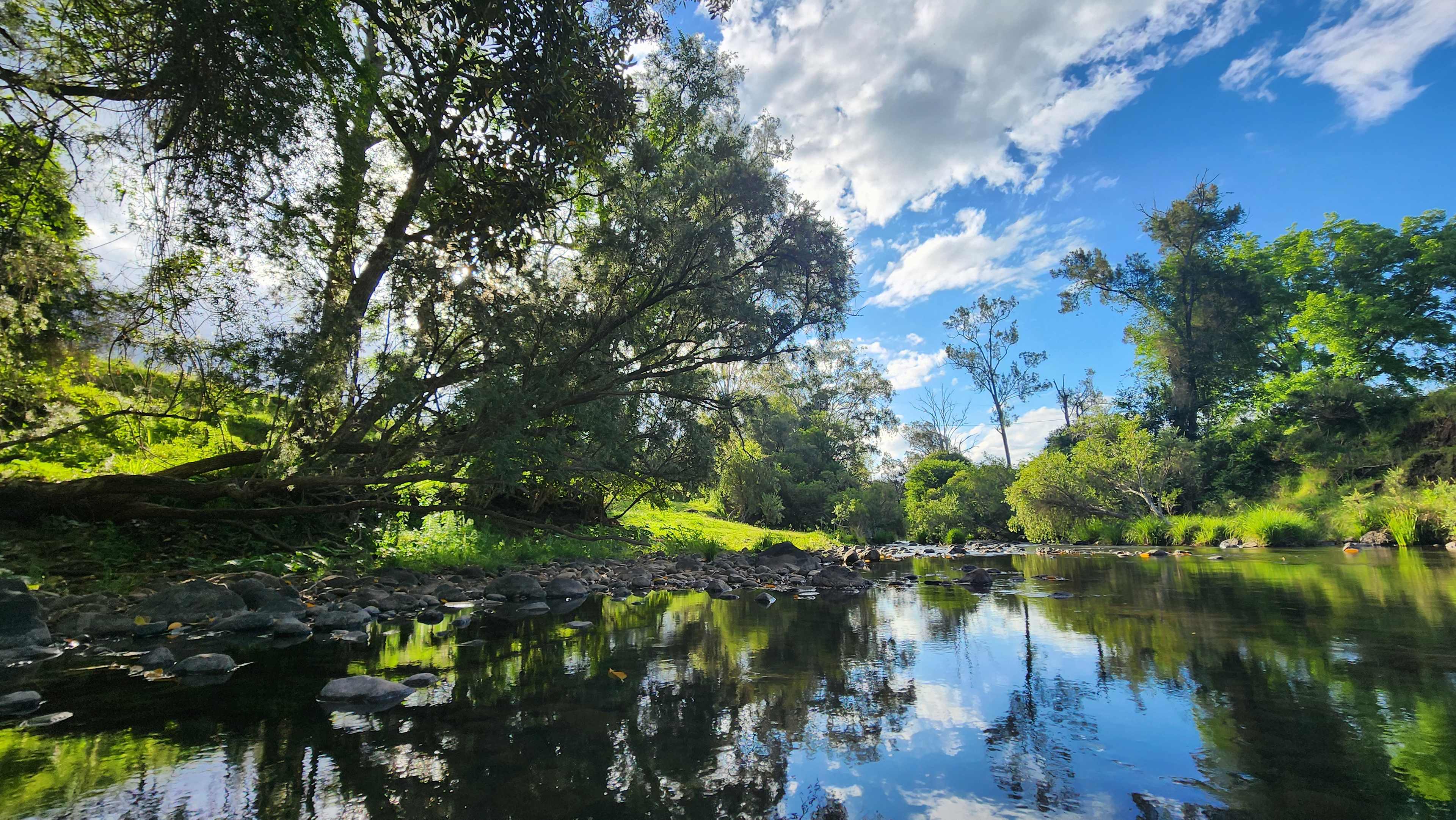 Kerry Valley Secret | Kingfisher Campsite in the Scenic Rim is an exclusive bush campsite - once you have booked no-one else will be able to camp here - and it is perfect for groups! The campsite is situated on the babbling upper Albert River. The "Longreach" waterhole is the star at Kingfisher Campsite. The campsite features a large open space with views to Gorman's Rock and Mt Alexander. Campers have a choice of a short track direct to the Albert River or a 450m jaunt to the "Longreach" waterhole. ​​Great for those who love fresh water fishing. Bass is a favourite catch and release fish or target the pesky Carp. Bring your togs and floaties to cool down in the "Longreach" waterhole Plenty of space to kick around a football or practice your golf. Easy access off Kerry Road. Facilities include a firepit, cement bench and basic toilet facilities (a portaloo). BYO drinking water. We do recommend that campers bring marquees for shade in summer. It is shady while you are visiting the river. The large open spaced campsite however, means that there is a shortage of shade at the actual campsite (we will be planting trees).