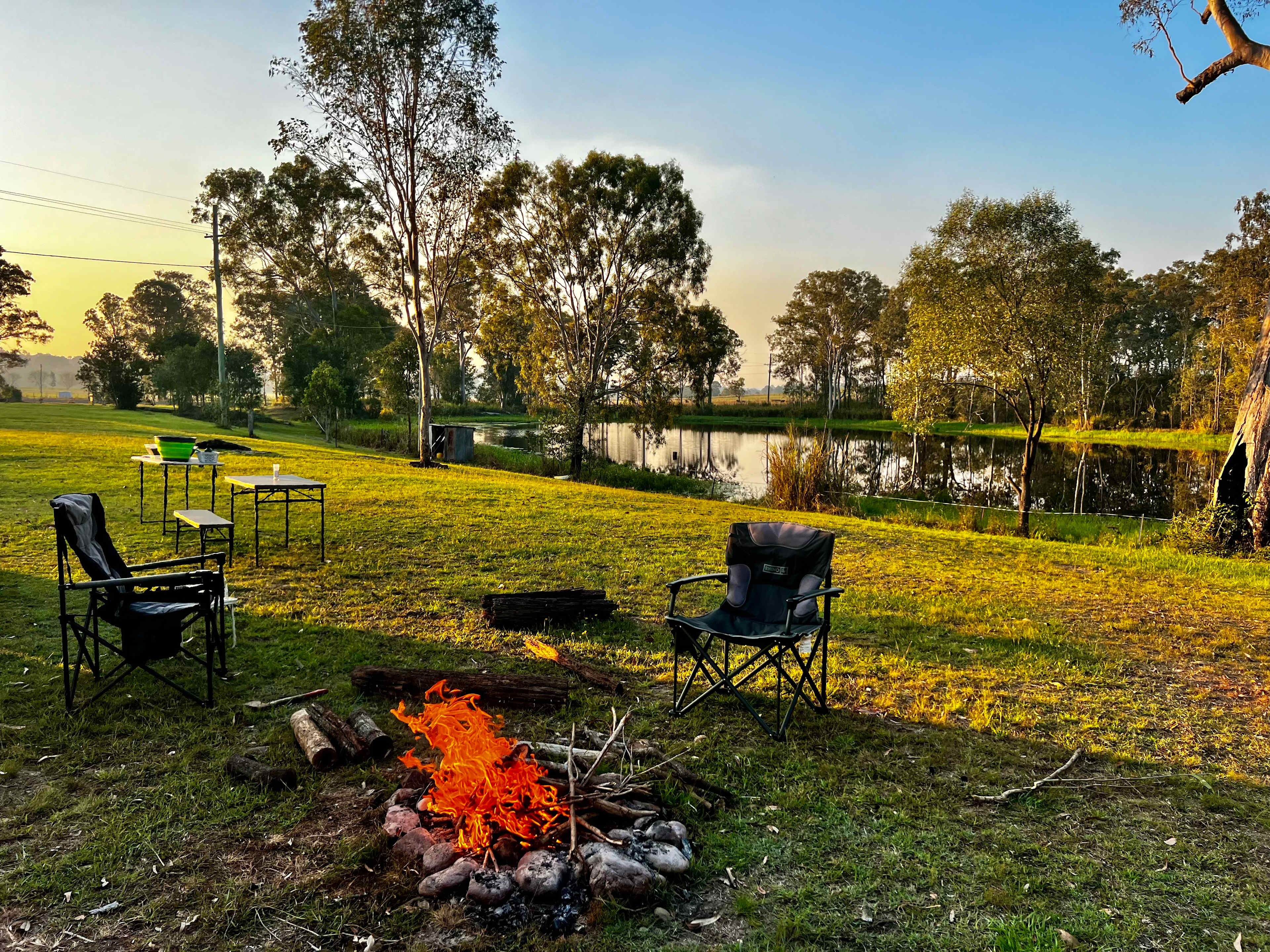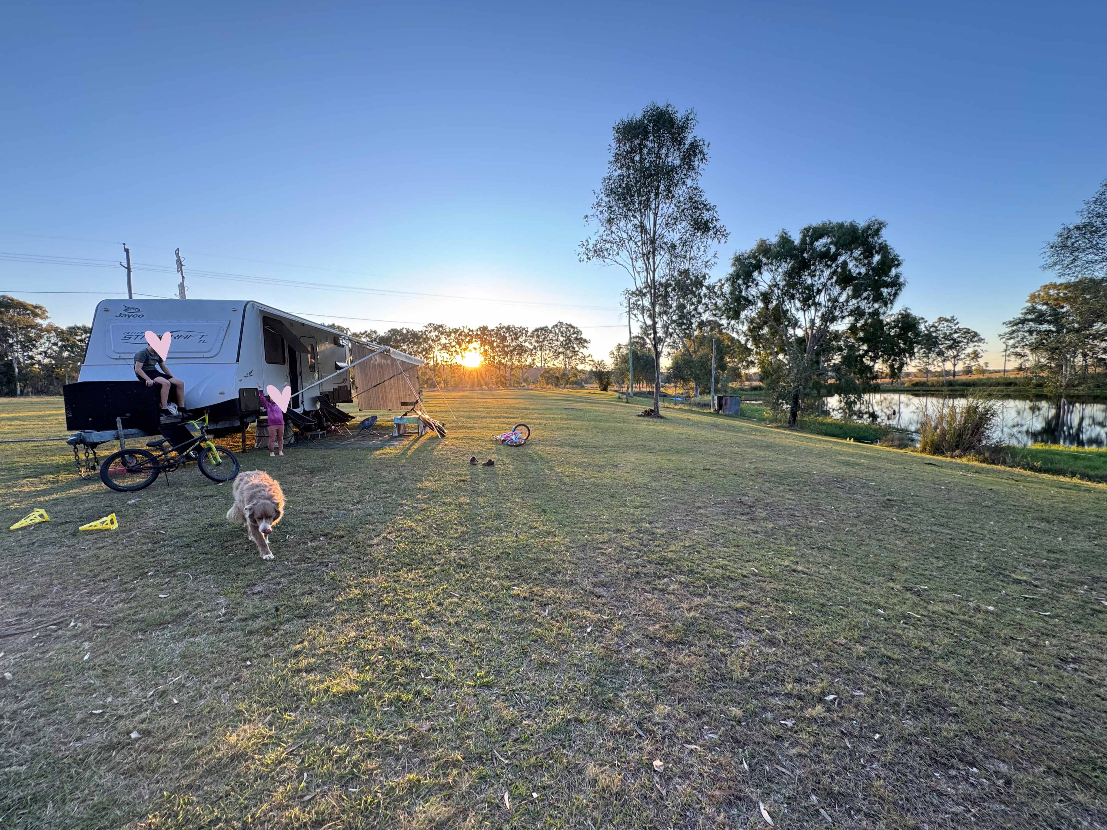 Right on the beautiful Mary River, we offer overnight a range of camping options. Although our farm worker Errol has left we will still continue to provide the extra large, properly mowed sites that we know our guests and the kids love. **We have plenty of spacious, level RV and tent sites. Many are waterfront on the clean, spring fed lagoon. **Dogs have plenty of space to run and swim off leash. **Fire pits, wood and our kayaks are provided free. **Private river access for swimming, fishing, gold panning/ fossicking and paddling. Riverbend is a working, historic farm from 1886. It boasts magnificent views as we are on the hilltop and the sunsets are unforgetable. Fshing - mostly bass, saratoga, perch, eeltail catfish, tilarpia Swimming - in the river, rock pools, small rapids or in our big lagoon Paddling- the beautiful Mary River offers a variety of paddling experiences. Yabby catching - traps or meat on a string in the big lagoon Fossicking and panning for gold - in the river. PUSH BIKES E BIKES - the farm is suitable for bith TRAIL BIKES - kids with no bigger than 50cc welcome but must ride in designated area under full parental supervision. For adults there are huge state forests next door with fantastic trails as will as the sand trails in the enormous pine forests close by. PARTY SHED - if you wish to have a bit of a party, band, get together etc we have a pretty groovy 100 year old shed for hire.