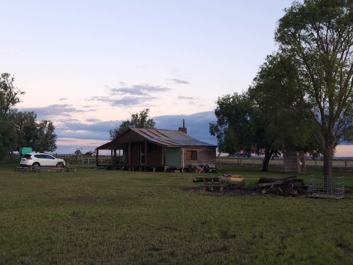 Agricultural area. We grow crops and fatten cattle. The camp area is fenced by a 4-strand barb wire fence and is adjacent to steel cattle yards. There is a 4 km all weather gravel road to the site There is limited wet weather access to sites and cabin The sunsets are breathtaking. There is no swimming places at the camp. Water is available and a toilet and shower is in the cabin. There is a fireplace outside and a small mobile fireplace available There is no powered sites The cabin has solar and 12v lighting.