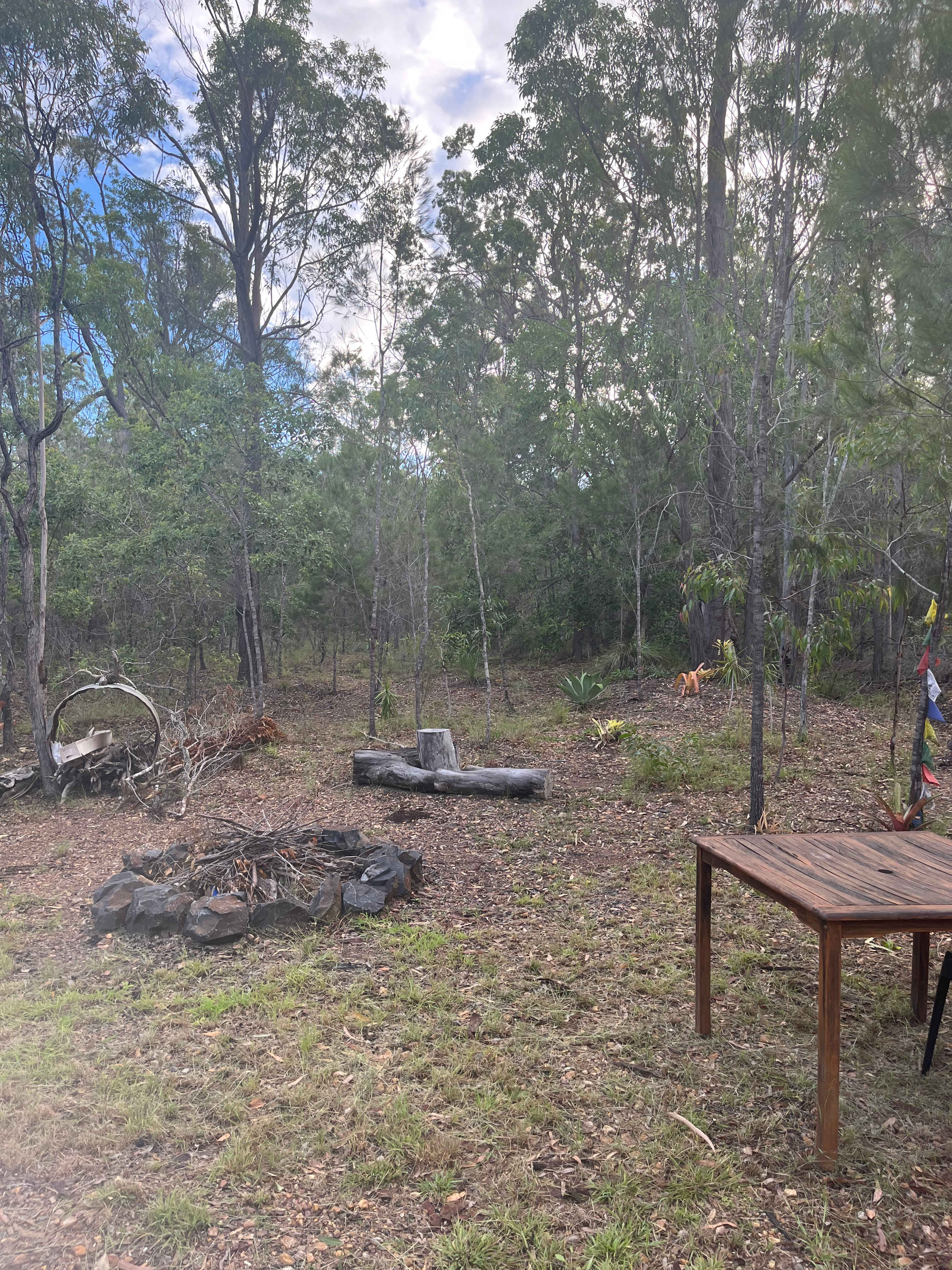 We are located on 5 acres of beautiful land mainly bush. We would love to share this with others so we are opening our property to visitors. We just ask that you respect our place as you would your own. We hope you enjoy the peace, quiet and wildlife just as much as we do. Park your van or pitch your tent in our beautiful landscape, enjoy birds, wallabies and kangaroos a stone fire pit ready to go. We have firewood available for you but you are welcome to gather fallen timber around the property yourself. Guests are required to be self sufficient with their own toilet/shower facilities and must take all waste and rubbish with them on departure. We have a picnic table and chairs available which overlooks our rainforest garden and dam.  The property is ideally located 8 minutes from Childers, 20 minutes from Burrum coast national park (Woodgate beach) and only 25 minutes from Bundaberg. Pets are welcome, please keep them under control at all time and clean up after them.