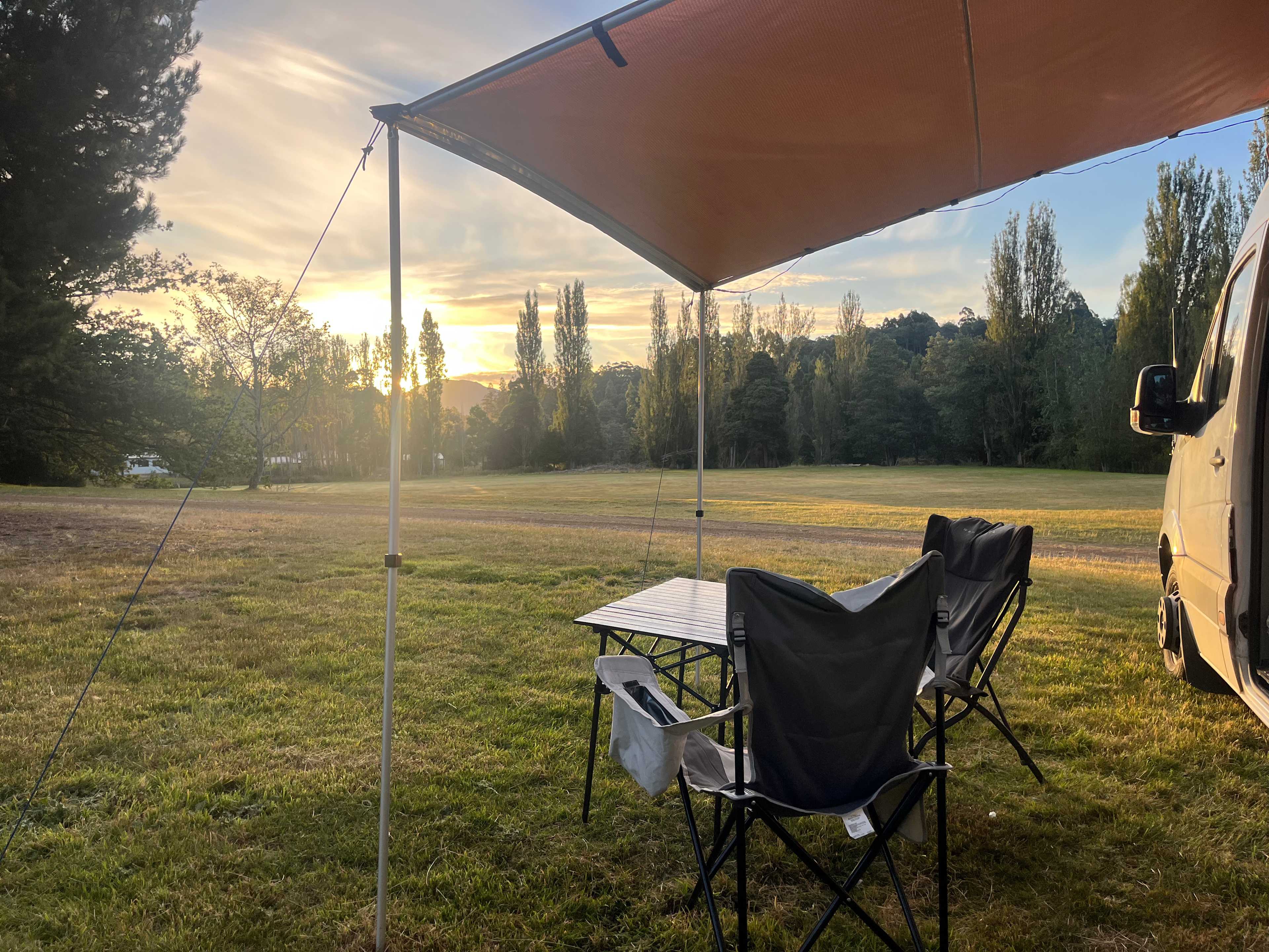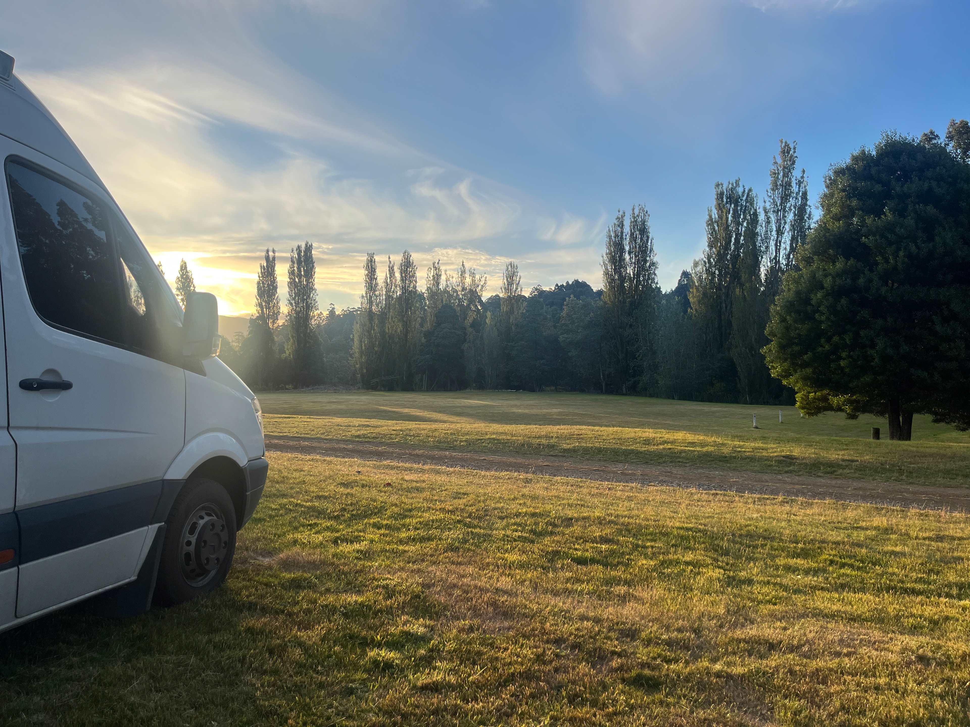 *With respect, please read and understand booking details. Please reach out to me with any questions!* Situated in the quiet town of Maydena, the old oval property runs along the Tyenna River, home to platypus and freshwater fish. The town itself is home to the famous Maydena Bike Park and within 10 minutes drive to Mt Field National Park on the east side and a beautiful 1 hour drive to Strathgordon on the west side. Walking up Junee Road you will find walks to the local caves and other stunning hikes. The oval is right next to the Railtrack Riders who provide visitors with access to pedal-powered railway carts. The camping here is for self-contained campers only, those that have their own toilet and take all waste when they go. Please no ground fires as they leave burn patches in the grass. Weather permitting (no fire bans), happy for you to have a firepit as long as it is elevated off of the ground (brazier) and leaves no trace.