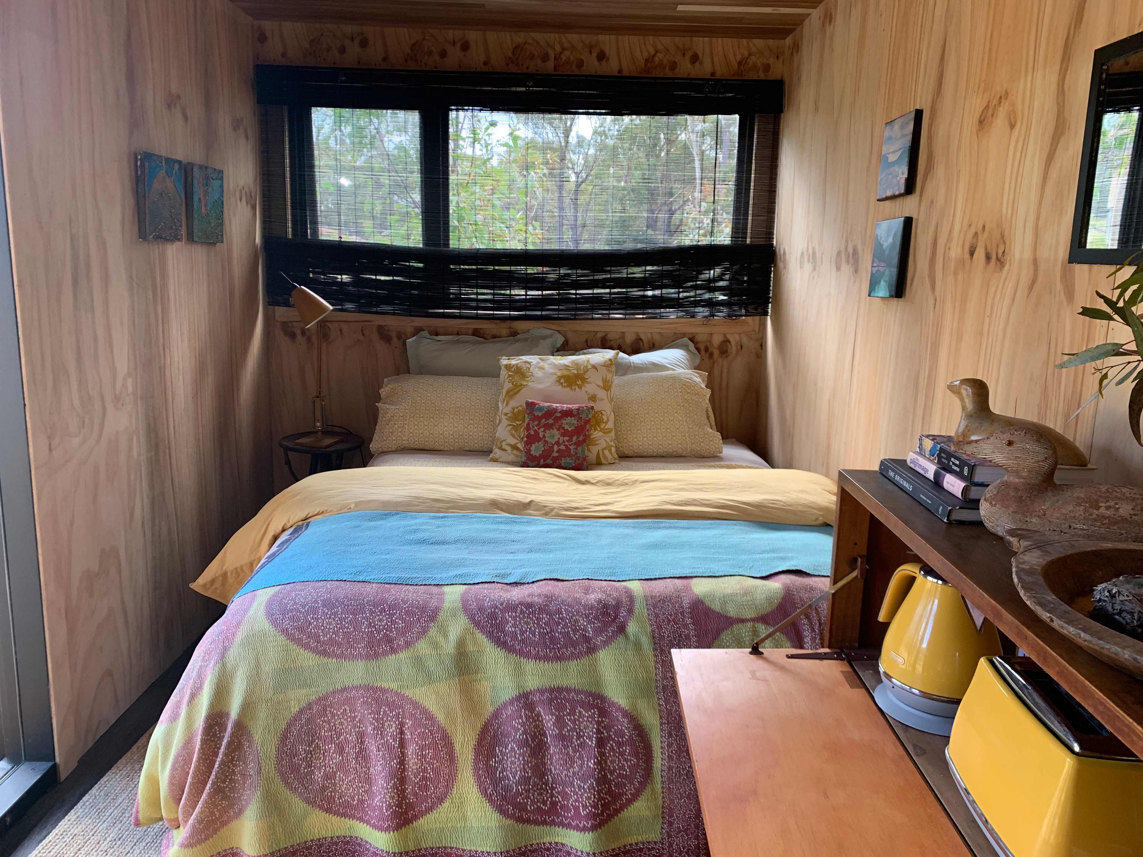 Off-grid comfort awaits in this unique and tranquil getaway, located on a 200-acre private wildlife reserve. Our cosy cabin suits those who love the outdoors but also appreciate creature comforts. Relax on the large veranda, enjoy outdoor dining, and take hot showers surrounded by towering eucalypts, abundant birdlife, and the occasional curious wildlife. We are on a wildlife conservation property, and the cabin is located at the bottom of our large native garden, alongside an organic vegetable garden and orchard.A self contained off-grid cabin surrounded by towering eucalypts, birds and wildlife. Situated on 200 acres of private wildlife reserve at the bottom of our large native garden, organic vegetable garden and orchard. Enjoy over 6kms of private walking tracks, field guides and close access to stunning Friendly Beaches.