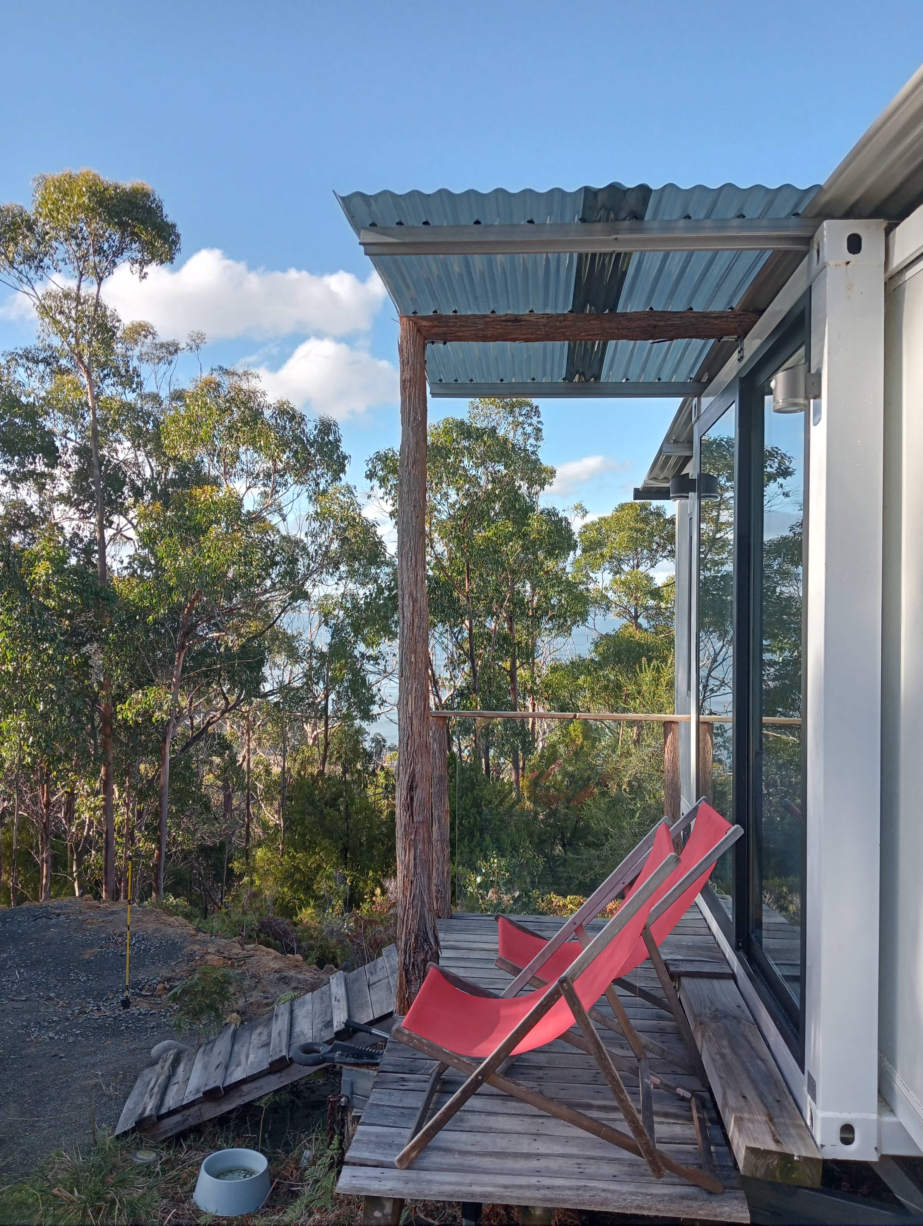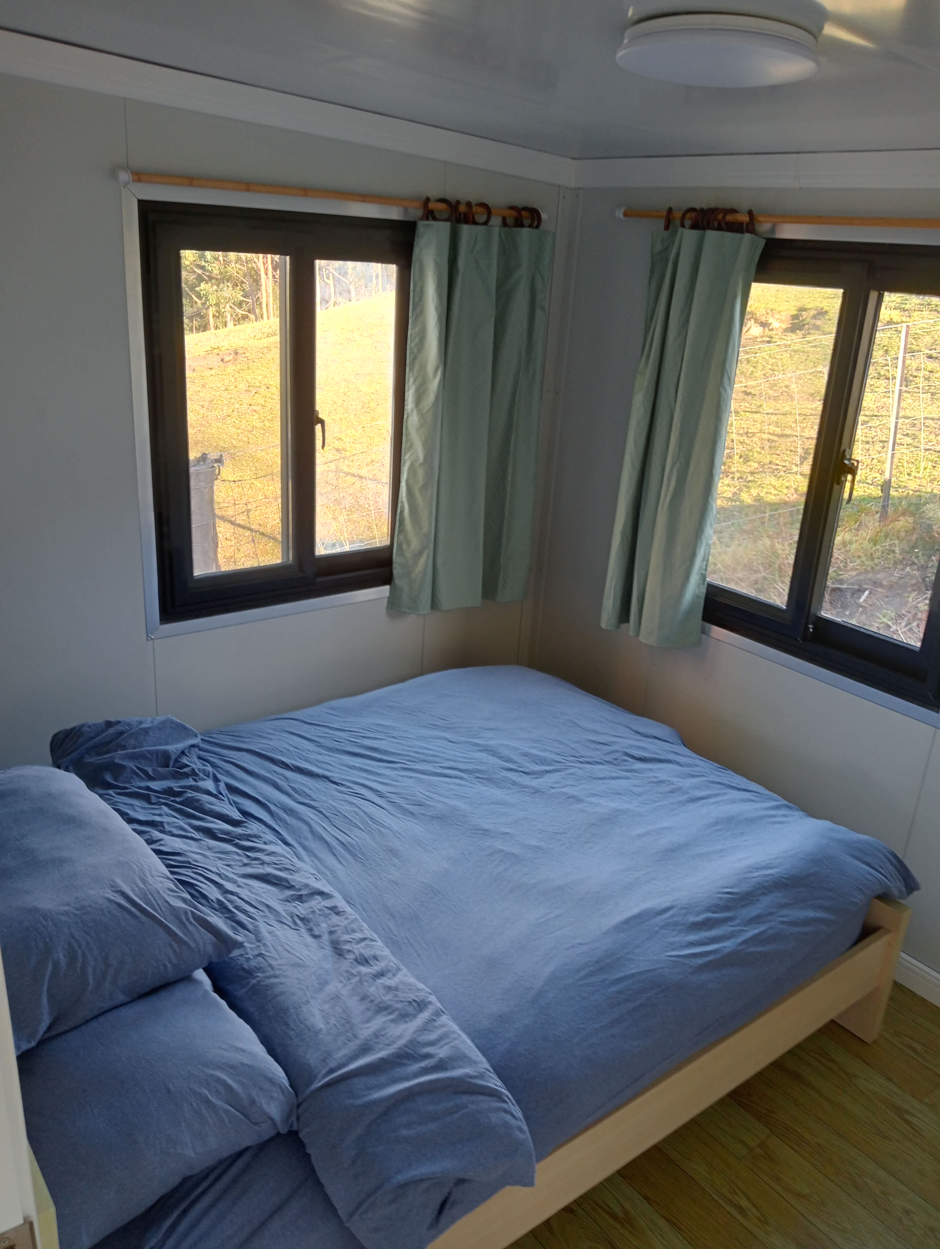 The self-contained off grid cabin enjoys all day sun with sun rises second to none, has its own access off Kregors Rd, has two bedrooms double and single room. The kitchen has gas oven, hot and cold Cloud Juice 😉 straight from the cleanest sky in the world, a bar fridge and small dining table. The bathroom has a basin, shower and top of the line composting toilet. You can enjoy great views of the Channel from outside around a fire (wood supplied $10 per bag) or on the small deck soaking up the afternoon sun or from inside which is kept cosy by gas heating for those chilly winter nights