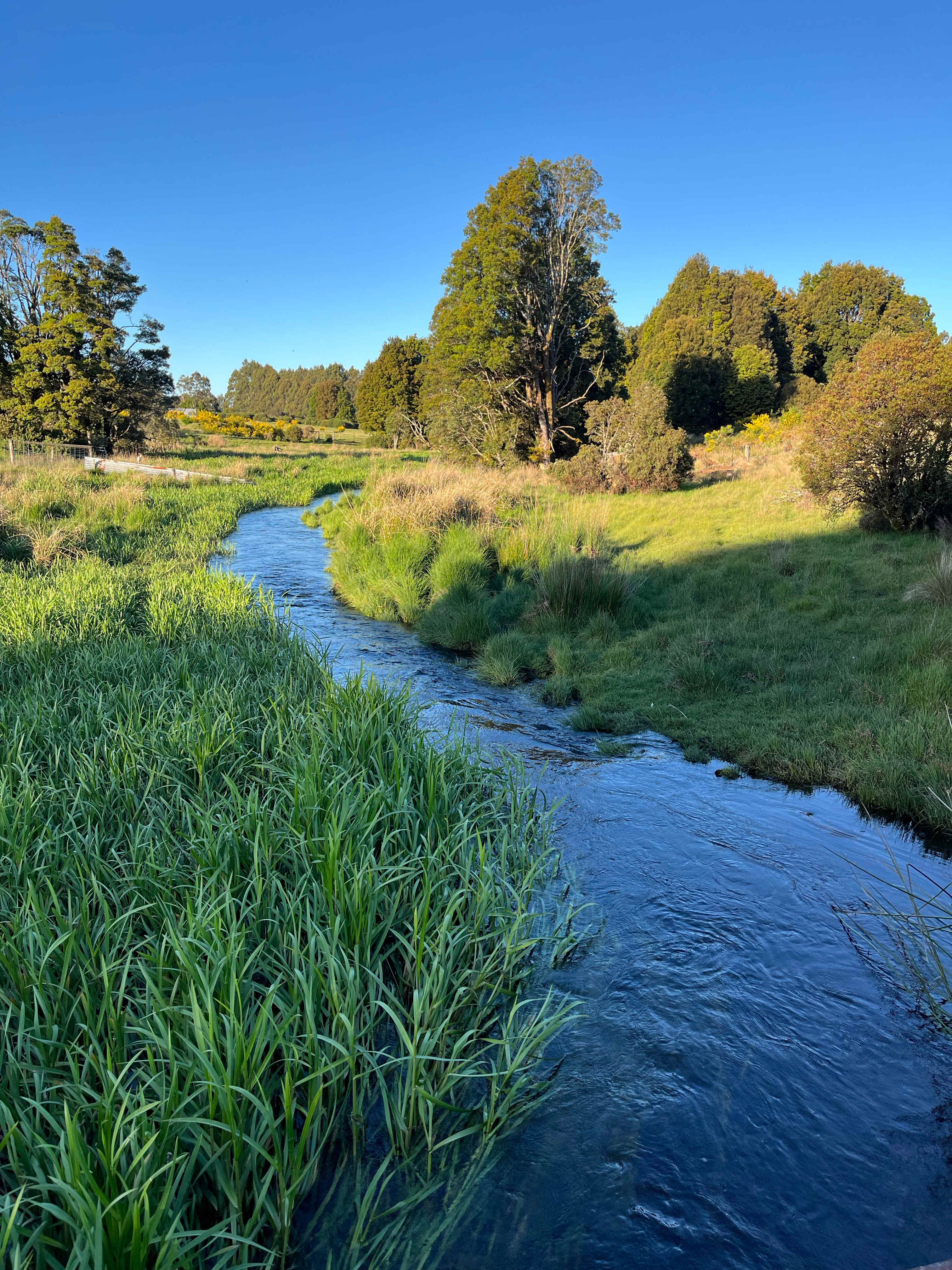 Riverside Campsite is a flat grassy space on the banks of the Waratah River, perfect for relaxing and fishing. Guests will enjoy 20 acres to explore and pets are welcome and only need to be on lead if not good with animals as there are goats and wildlife in the area. Perfect location for RV, Caravans or Vans. Guest can choose to set up in paddock with goats and alpacas or in another fenced area with no animals. Guests will have to have their own toilet and shower onboard. There is no power at this site, but potable water is available in town and a dump point and grey water can be emptied into top paddock. Alpaca and goat feeding is normally in the afternoons 4-6 and platypus viewing in lakes in town is at sunset. No Tent Camping.