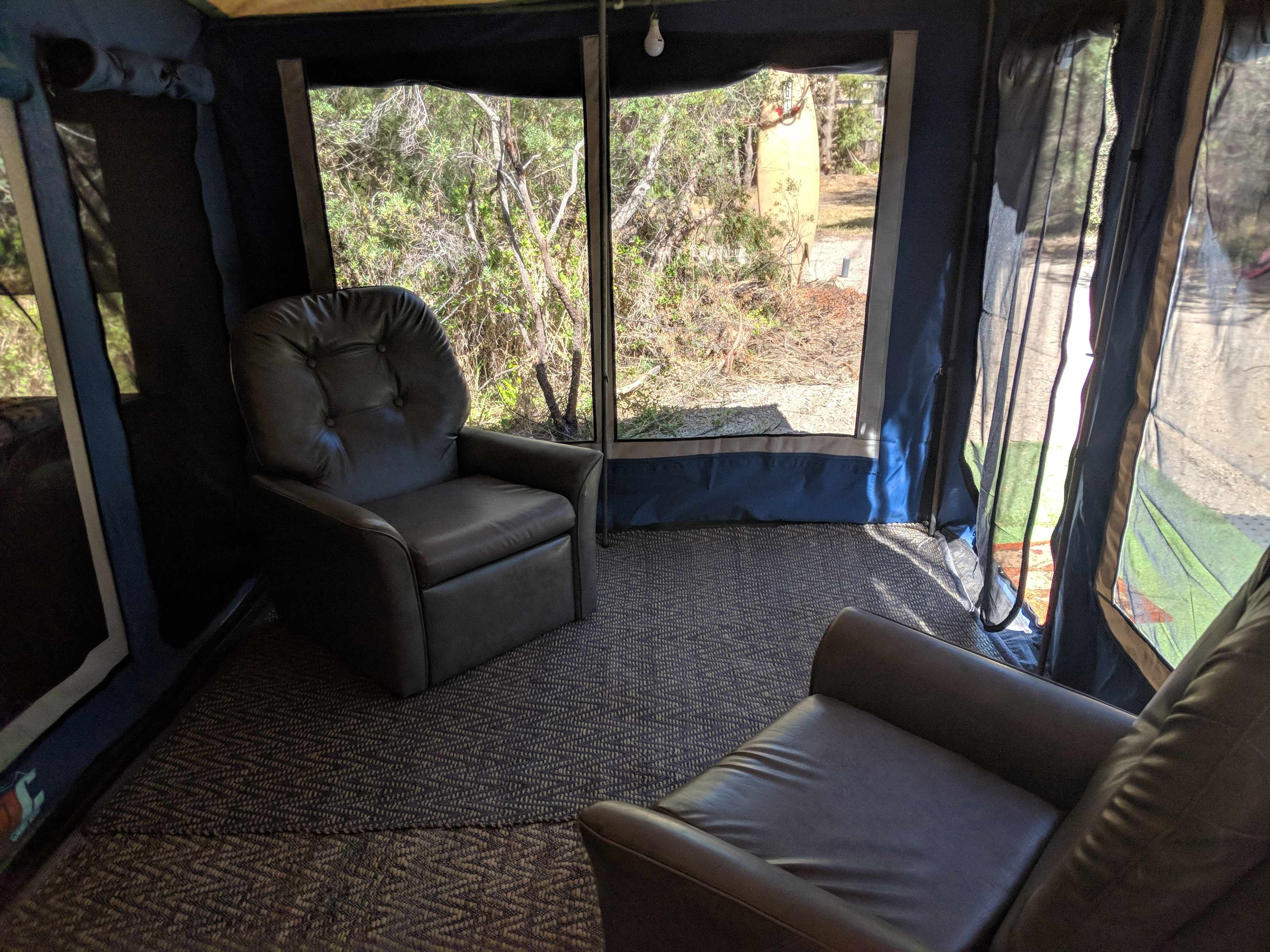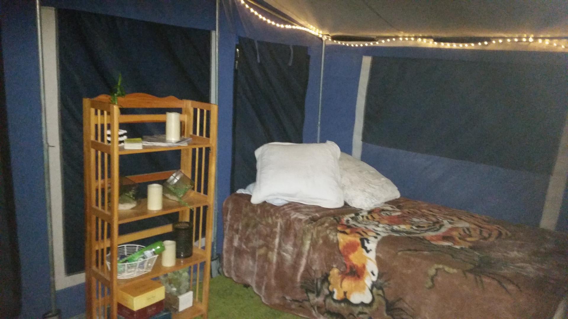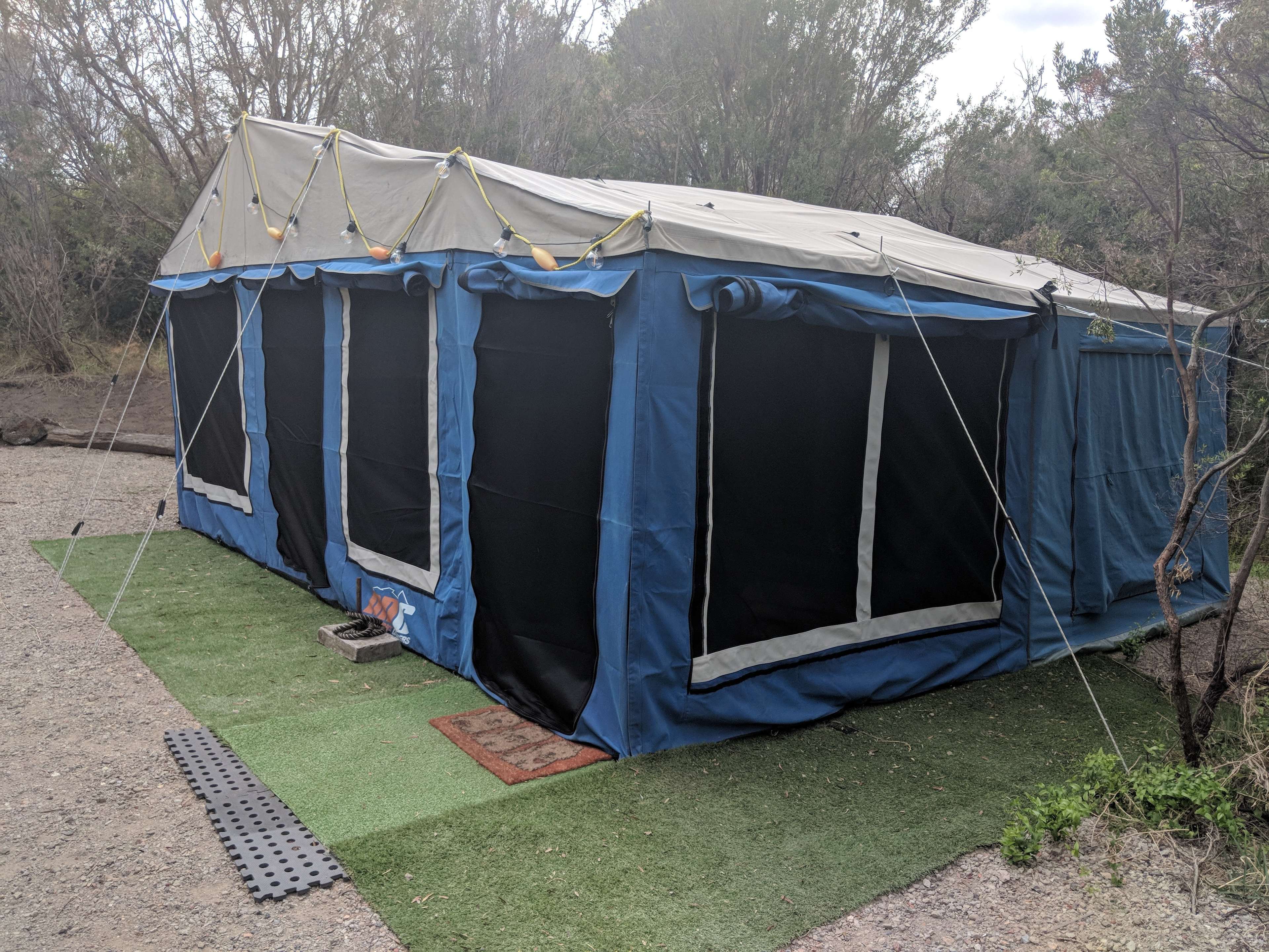 A private camper trailer set up sleeps a maximum of four (recommended 2 kids & 2 adults). Queen bed and king single trundle bed. Great for young families or couples. Set in a nook of a paddock away from main residence (7 acre property). Portable loo and COLD outdoor bathtub with hose to rinse off. Camper is equipped with gas cooker, bar fridge, utensils and pump water sink. This is camping with the set up done for you to enjoy. Friendly dogs welcome. Walking distance 10 mins to St Andrews Beach Brewery. In between Gunnamatta back beach and bay beaches. Horse riding, Peninsula Hot Springs near by.