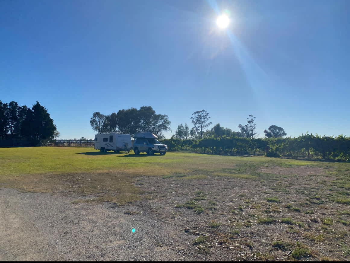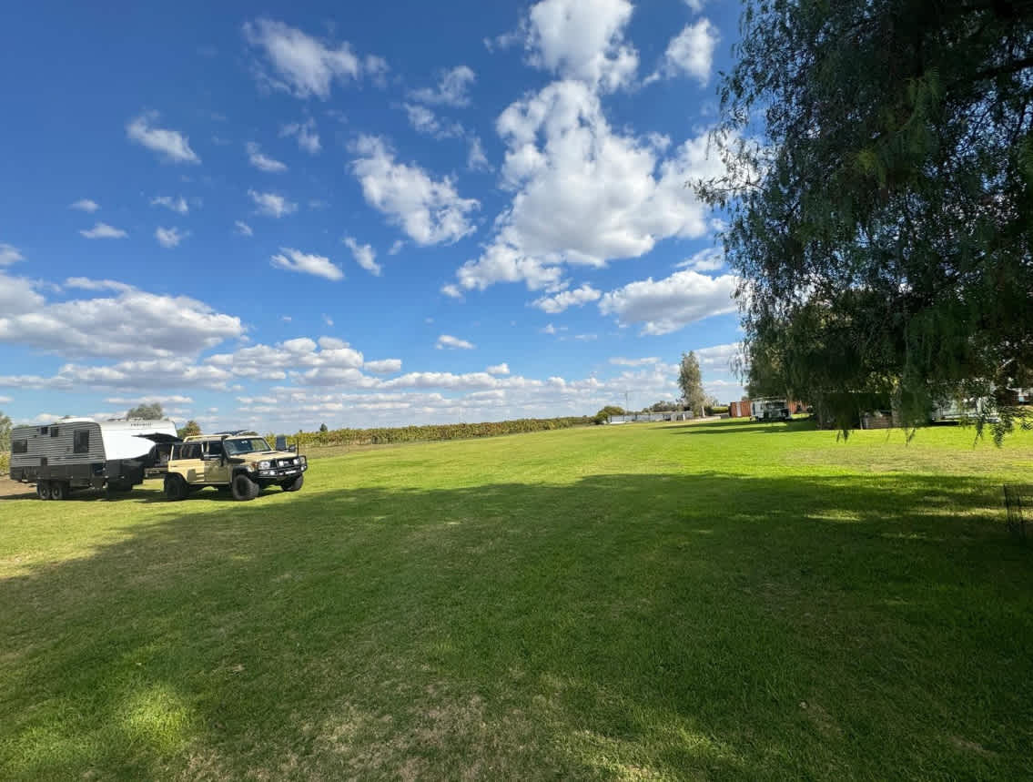 Camping available for self-contained campers. Caravans, motorhomes, and tents are welcome on a spacious grassy area near grapevines and fruit trees, with plenty of room to spread out. The site is safe, peaceful, and conveniently located near Mildura and Irymple. Water is available, and pets are welcome.