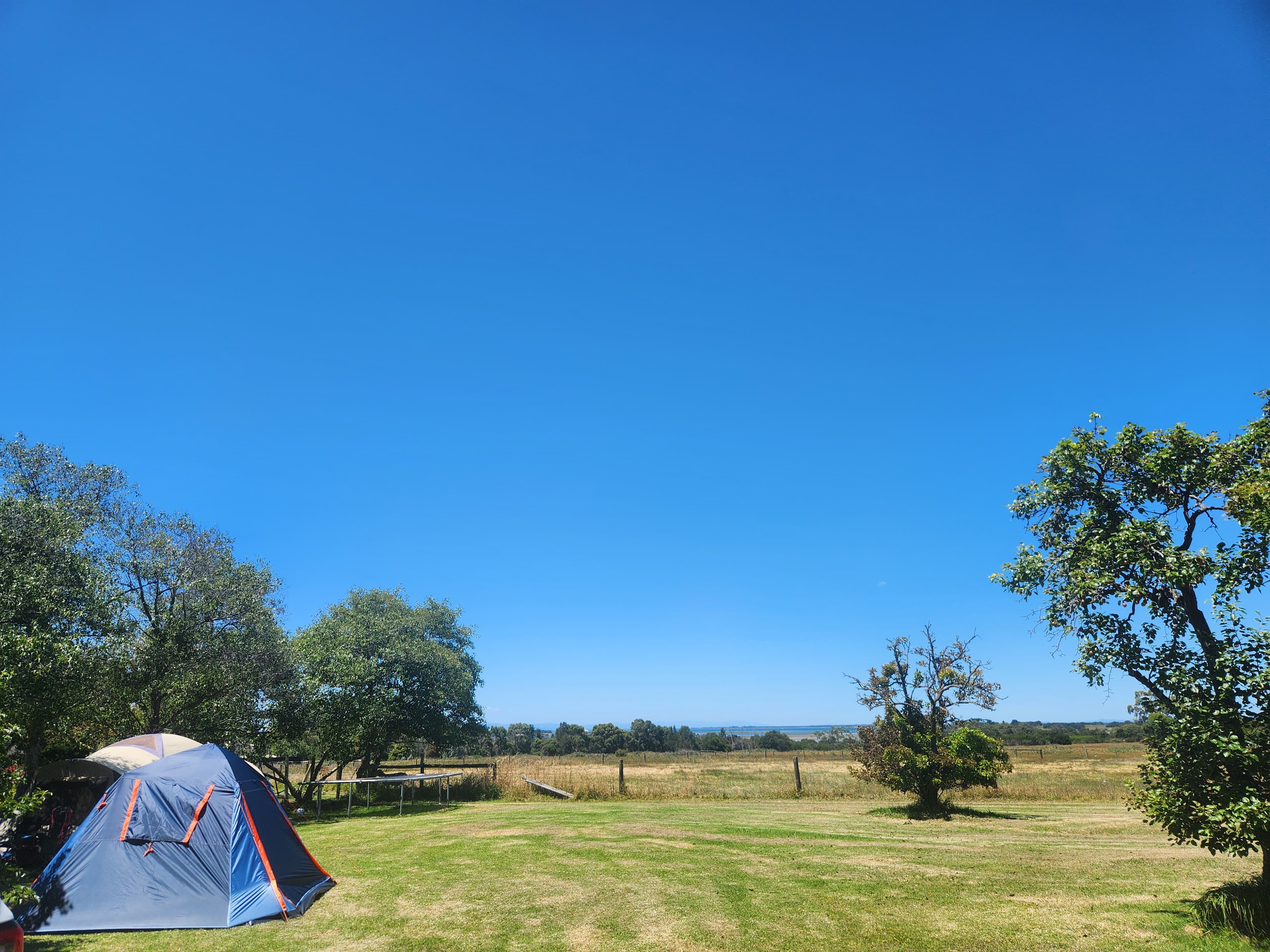 Seaglades is located in Bittern on the Mornington Peninsula, set along a tranquil lane with beautiful bay views. We invite you to enjoy our working farm, where you can wander the property and meet our friendly sheep, horses, and chickens. We host a maximum of four parties at any one time, offering two orchard sites ideally suited to tents or camper trailers, plus a gravel site perfect for caravans and motorhomes. The property has excellent access and ample parking for boats and floats, and horse holiday agistment is available on request. Seaglades is a perfect base to explore the Mornington Peninsula. We are just 7 minutes from the Hastings Boat Ramp and 4 minutes from Stony Point, making this an ideal location for fishing enthusiasts. We are also well suited to horse holidays, located minutes from equestrian grounds, with great access and local knowledge of the many excellent equestrian trails the Peninsula has to offer. With over 20 years of local knowledge, we’re happy to point you toward the best surf spots, eateries, and wineries in the region. Please note that all guests must be fully self-contained, including bringing their own toilet facilities. Pets are not permitted on the property. Fires are not allowed at any time. At the end of the day, return to your campsite to watch the moon rise over the water and enjoy the peace and tranquillity Seaglades has to offer.