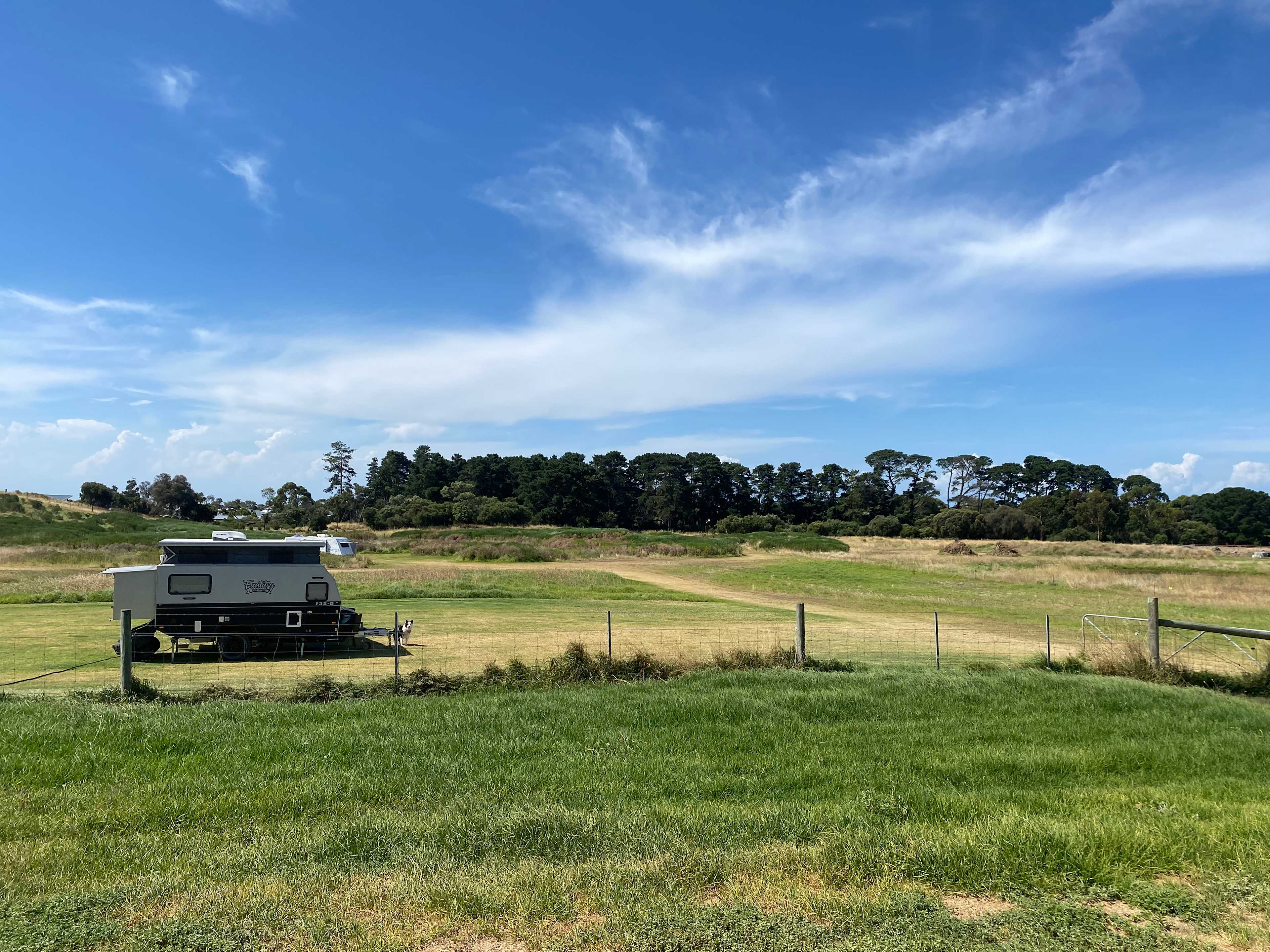We loved camping here. The area for each camp is large and your away from other campers. Its really dog friendly, all the space made it easy with our medium size doggos, plenty of room to run and play. The sites are cared for, we could walk around barefoot on the grass and didnt need the annex floor. The walk to the beach is flat, short, easy and mostly shaded. We found it very peaceful. The location is great, central to so many things to explore. The hosts are really lovelly, greeting you and taking time to explain what you need to know.