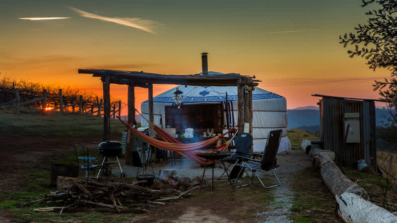 Experience some of the best views in Australia at The Yurt Alpine Retreat which is situated in the Victorian high country on a 345 hectare working farm and 20 hectare vineyard. The Yurt is surrounded by natural bushland perched on top of a mountain in one of Victoria’s best wine producing regions in Myrrhee which is part of the King Valley. Because of its remote location, absolute privacy is assured for guests. No neighbours to be seen, run around in the nude if the notion takes you. After driving along a steep dirt track through natural bushland teeming with kangaroos, wombats, rabbits and deer, you will burst onto a plateau with amazing views of the King and Myrrhee valleys. There are fantastic scenic walks along our mountain ridge or you might like to explore the natural bushland adjoining the property. You will hear the sounds of many birds including beautiful King Parrots and black cockatoos. You might see the resident eagle hovering overhead or even a white deer if you are really lucky. Just bring all your own food and clothes, everything else is provided. NO PETS.
