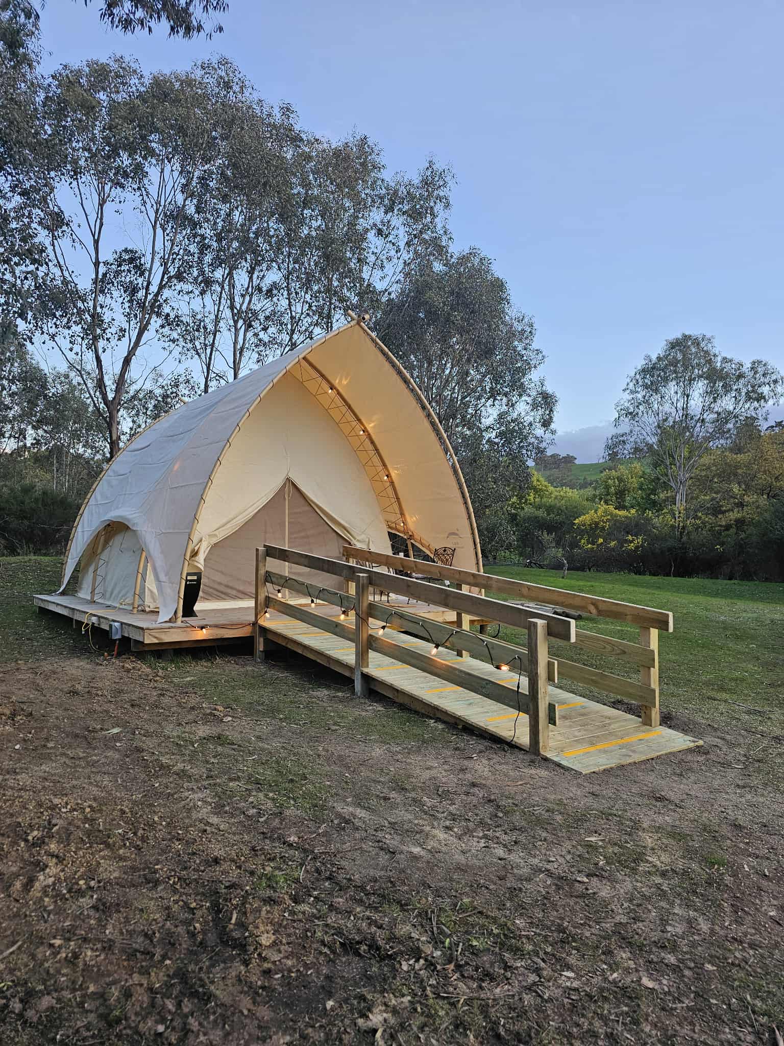 Just over 1 hours drive from Melbourne, you'll arrive in the peaceful town of Flowerdale. Here at Tranquil Rises we offer 2 on-site Glamping Tents with lake views. The on-site tents offer the upper most opulence for those wanting to get away in style. Plenty to do on this 60 acre retreat - bushwalking, nature spotting, kayaking, fishing (additional cost). Or simply relax by the water. The local Flowerdale Hotel offers a fantastic atmosphere and great pub meals for those who want to do as little as possible. Or even cook your own BBQ right in front of your tent on one of our brand new BBQ's.