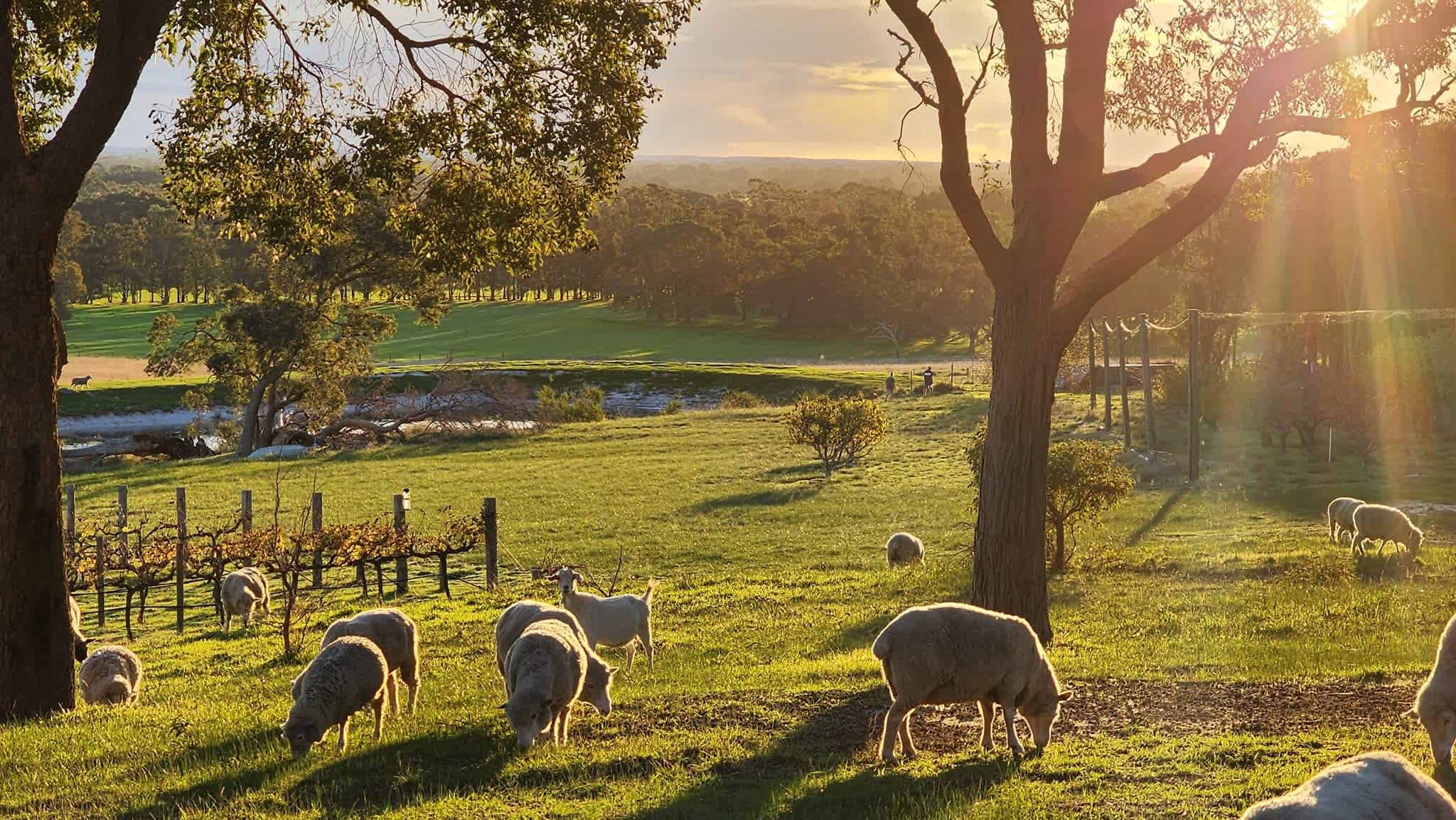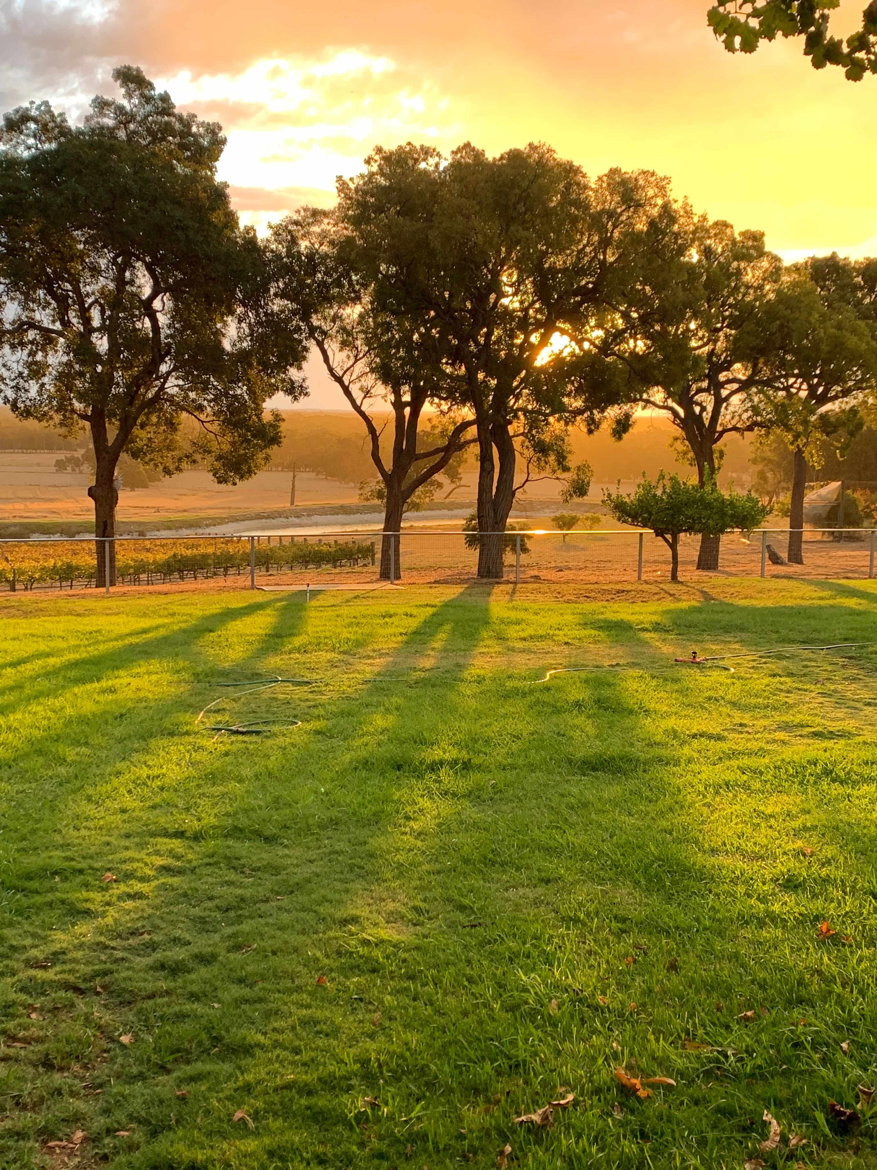 Cooper Day Estate Campground utilises 2 acres of woodland on our picturesque 162 acre working property. We offer 5 safe sites for self-contained vans, camper trailers or RV’s for up to 3 nights, as per our Council Permit. Our property boasts a small vineyard, seasonal fruit and citrus orchard, an olive grove, sheep, cattle, goats, horses, chickens, and our beautiful Australian Kelpie working dogs. The campground overlooks our crystal clear blue dam and is perfect to take in the stunning WA sunsets. Park up and just relax and enjoy the serenity, or head off for day trips to take advantage of the wonderful tourist attractions close by. Situated on the scarp, 3km off South Western Highway in Waroona, there is much to see and do in our area. The campground is secluded, well shaded, away from traffic noises, and large enough to give the feeling you are our only guests. Communal fire pits and firewood are provided when the fire season permits. We do not currently offer other amenities, but expect this to be a work in progress with future plans to provide ablution, shower facilities and a camp kitchen. We look forward to welcoming you soon.