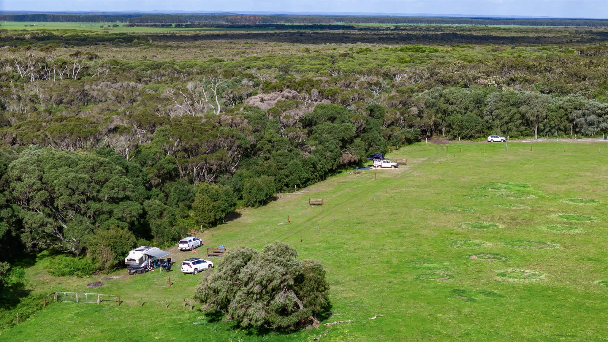 Cowslip Campsite is a peaceful, private spot that invites you to slow down and soak up the simple joys of country life. This unique site is tucked away accessed by its own track, giving you a private pocket of native bushland before opening out to a grassy clearing right on the edge of one of our working cattle paddocks. It’s a spot where you can watch the cows wander by, hear the bird calls in the morning, and enjoy the crackle of your campfire under a big, starry sky at night. The campsite itself is a cleared area with views over the paddocks and surrounded by stands of natural bush, alive with wildflowers in season — including the delicate yellow blooms of the Clowslip Orchid from which this site takes its name. You’ll feel miles away from it all, but still be within easy reach of the property’s walking trails, farm tracks and natural attractions. As this is a nature based campsite camp toilets must be used and grey water must be collected and disposed of in the dump point provided by Dunmore Homestead.