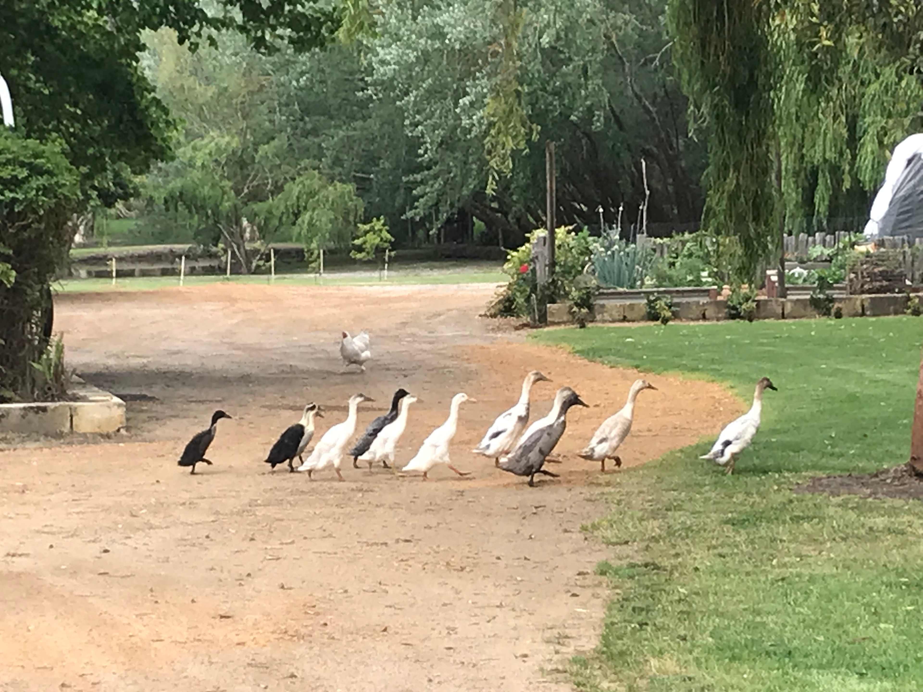 One friendly dog per site. As our 'girls' (chickens) and ducks are free range along with numerous visiting wild birds, dogs are required to be on a leash at ALL times.